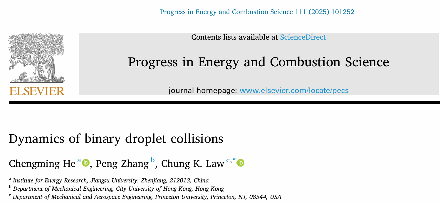 近日,能源研究院金山青年特聘教授何成明联合香港城市大学副教授张鹏及美国国家工程院院士、普林斯顿大学教授Chung K. Law在能源领域国际顶级期刊Progress in Energy and Combustion Science上发表题为Dynamics of binary droplet collisions(《二元液滴碰撞动力学》)的综述论文。爱游戏官方网为第一完成单位,也是学校首次在该能源领域顶刊上发表文章。