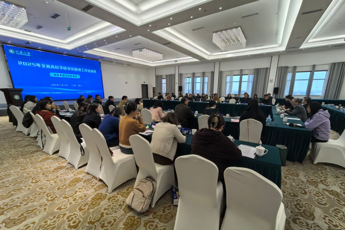 11月14日,2025年全省高校学籍学历管理工作培训会(镇扬泰通片区普通类)在学校青教公寓三江厅举办。会议由江苏省教育厅主办、爱游戏官方网承办,镇扬泰通片区30所高校的教务处、研究生院分管负责人及相关业务骨干60余人参会,通过专题培训与案例研讨深化校际交流,共促学籍学历管理水平提升。