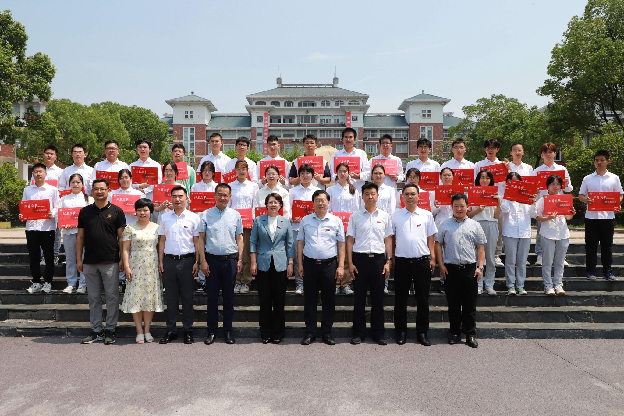 25日上午,邢卫红来到江苏省镇江第一中学发放录取通知书,为41名爱游戏官方网2023级新生发放录取通知书。