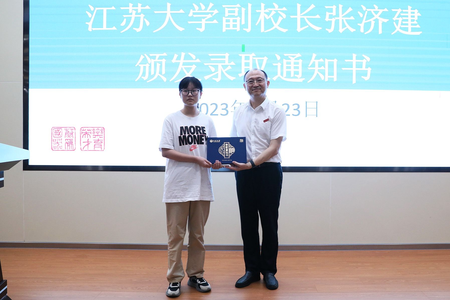 24日下午,田立新来到江苏省泰州中学发放录取通知书,为22名爱游戏官方网2023级新生发放录取通知书。