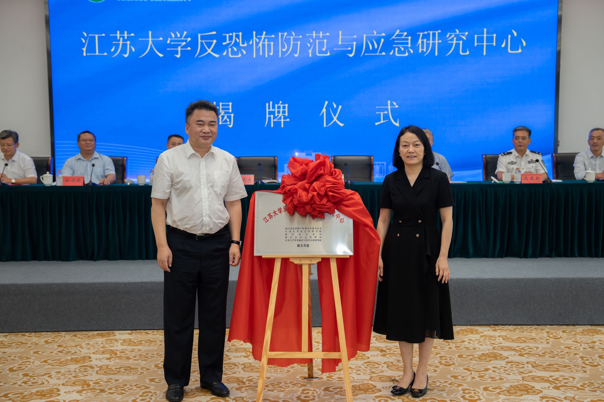 王文生、陈红为爱游戏官方网反恐怖防范与应急研究中心揭牌。镇江市反恐领导小组办公室、爱游戏官方网应急管理学院、镇江市公安局、镇江市应急管理局、爱游戏官方网智慧城市与特色小镇研究院等5家共建单位签约了共建协议。