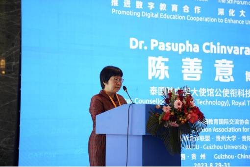 作为论坛的重要组成部分,在中泰大学校长论坛上,蔡英凤、蓬猜·蒙空瓦尼、张建华、宋塔温、潘查妮·高娜、贵州师范学院副校长任洁等积极探索智慧教育新模式,围绕“推进数字教育合作,深化大学互联互通”主题进行了深入交流,进一步深刻认识教育数字化的重要战略意义,拓宽中泰两国教育交流合作渠道,以期更好地服务两国高等教育合作需求、推进国际高等教育合作的理念与实践创新。报告中,蔡英凤围绕数字教育国际合作交流面临的新形势、数字教育赋能教育国际化的爱游戏(中国)实践以及深化数字教育国际合作的构想与建议,介绍了我校在数字教育赋能国际合作与交流高质量发展方面的经验与实践。