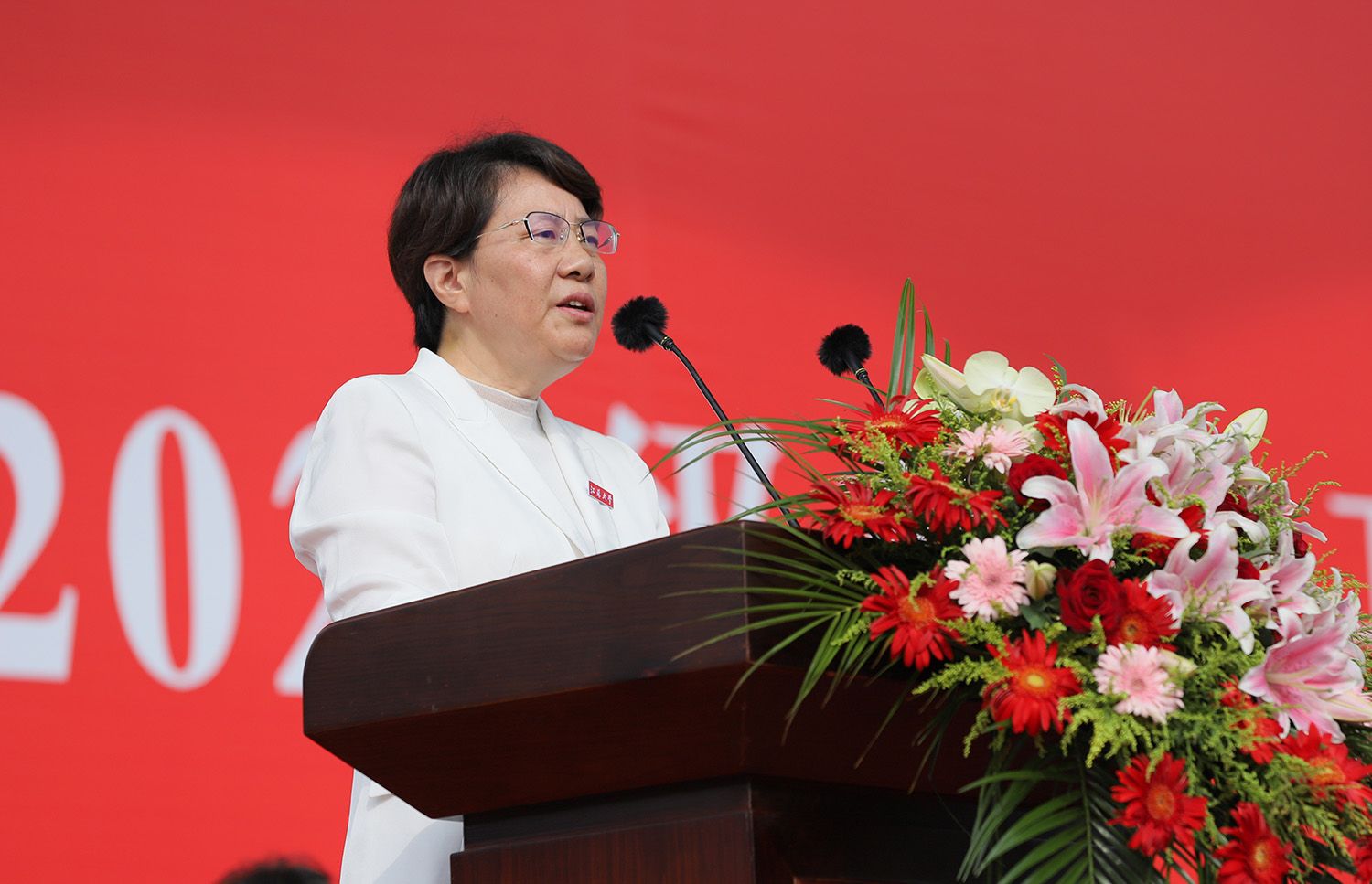 典礼上,校长邢卫红讲话,代表学校向全体2023级新生表示热烈欢迎,向辛勤指导训练的军训教官致以崇高敬意。邢卫红说,爱游戏官方网历史悠久、底蕴深厚,鸿儒云集、人才辈出,特色鲜明、使命光荣,同学们在这里求学逐梦,故事会更加精彩,将来大有可为。邢卫红用三句话与全体新生共勉:一是“博学”,把学习作为第一任务,在博学善思中筑牢成长根基;二是“求是”,把创新作为第一本领,在求是探索中增长智慧才干;三是“明德”,把人品作为最高学历,在明德笃行中担当时代大任。邢卫红希望全体新生惜时如金、晴耕雨读,在“博学、求是、明德”校训和“自强厚德,实干求真”爱游戏(中国)精神指引下,创造更多精彩,成就美好将来。她也提出一个小希望:同学们要养成习惯,每天给家人报平安、与家人分享校园生活。