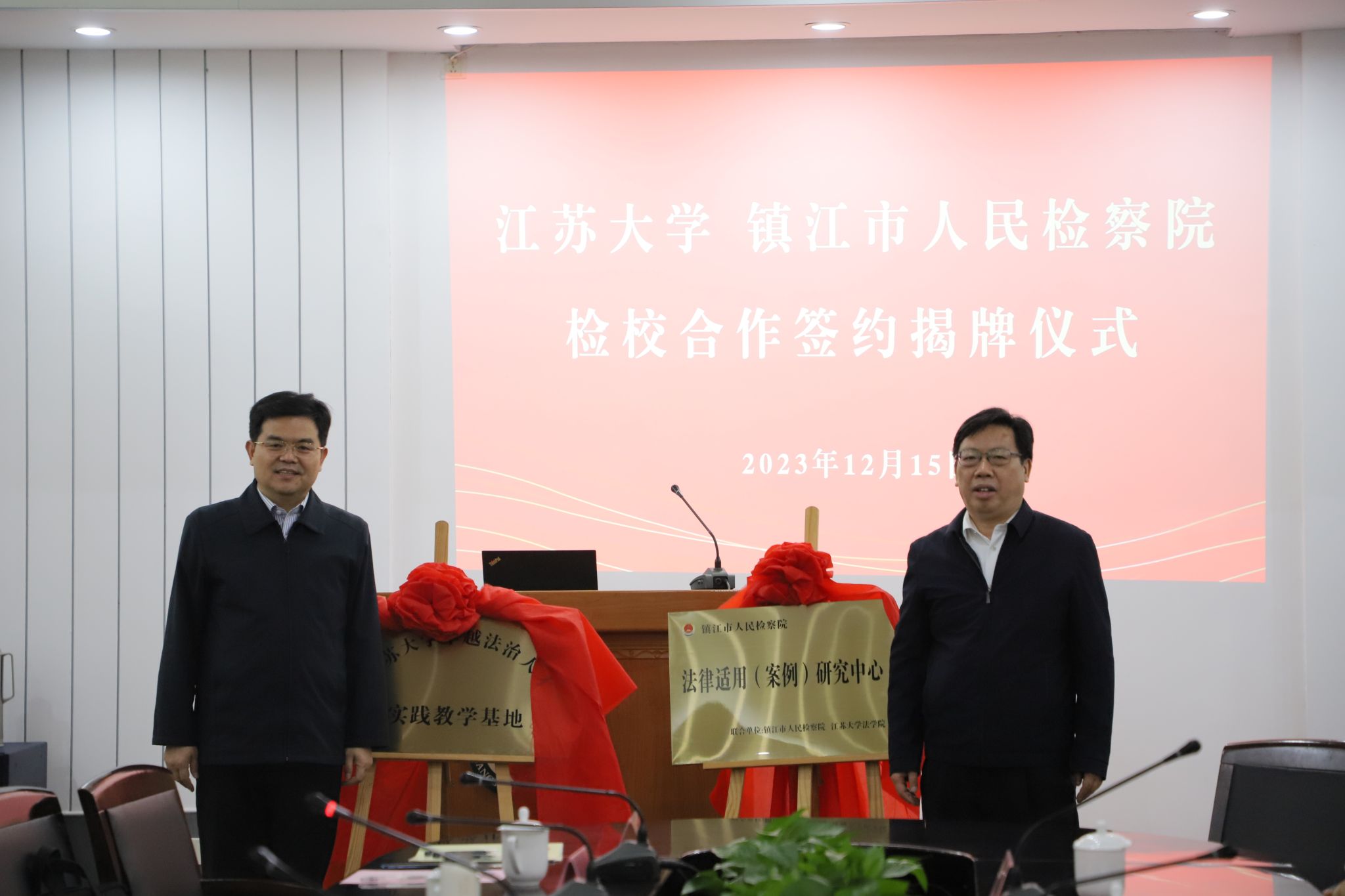 李洪波与潘昌锋共同为“爱游戏官方网卓越法治人才实践教学基地”“镇江市人民检察院法律适用(案例)研究中心”揭牌。