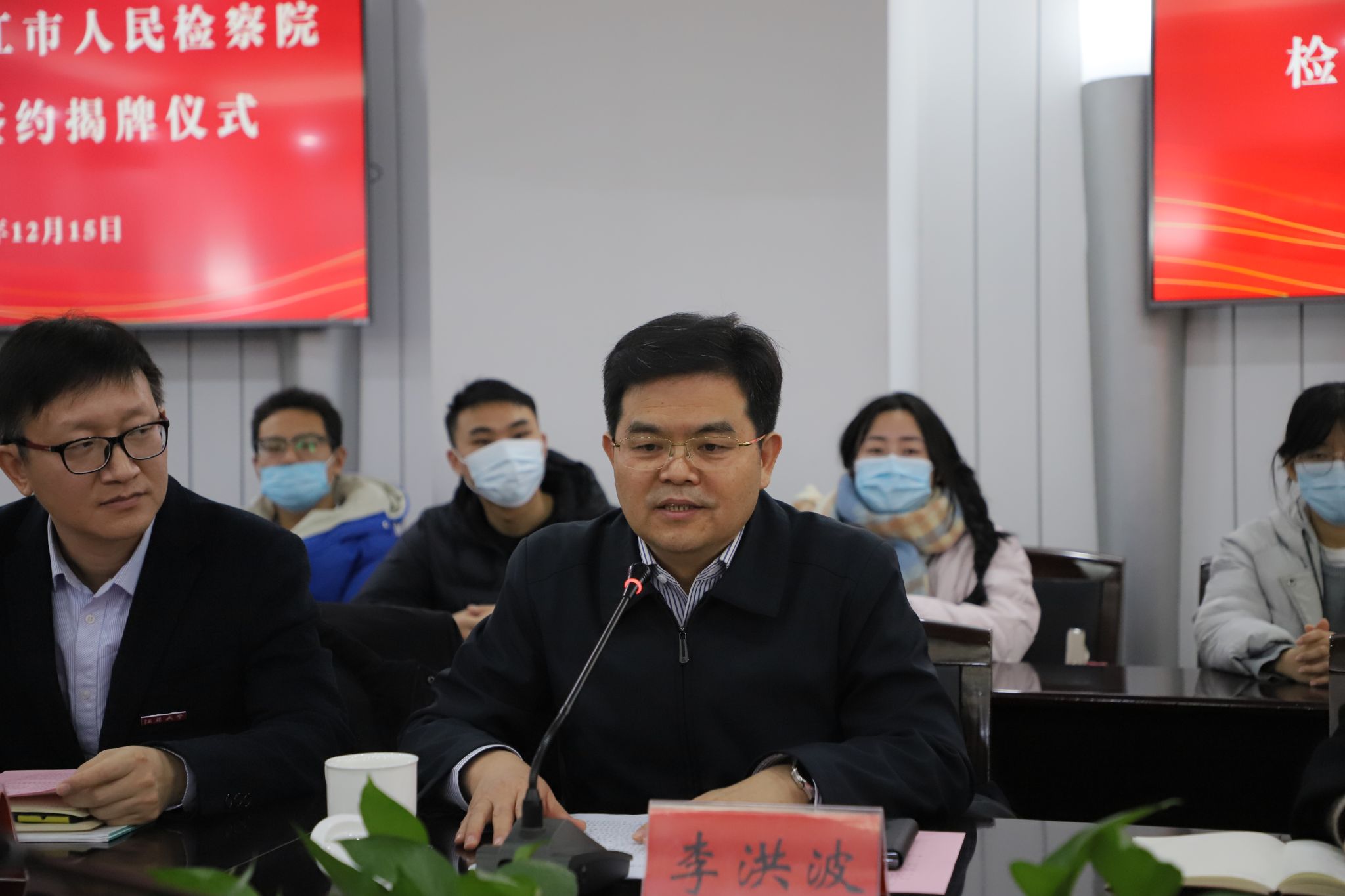 李洪波回顾了双方长期以来在理论研究、人才培养等方面合作历程,希望以此次合作共建为契机,以党建为抓手,建立稳定的工作联系机制,持续加大有特色的理论合作研究,共同加强有创新的人才协同培养,协力拓展有深度的合作空间,真正实现人才共育、课题共研、成果共享,探索出一条富有特色的党建引领业务的有效路径,推动检校合作长期健康发展。