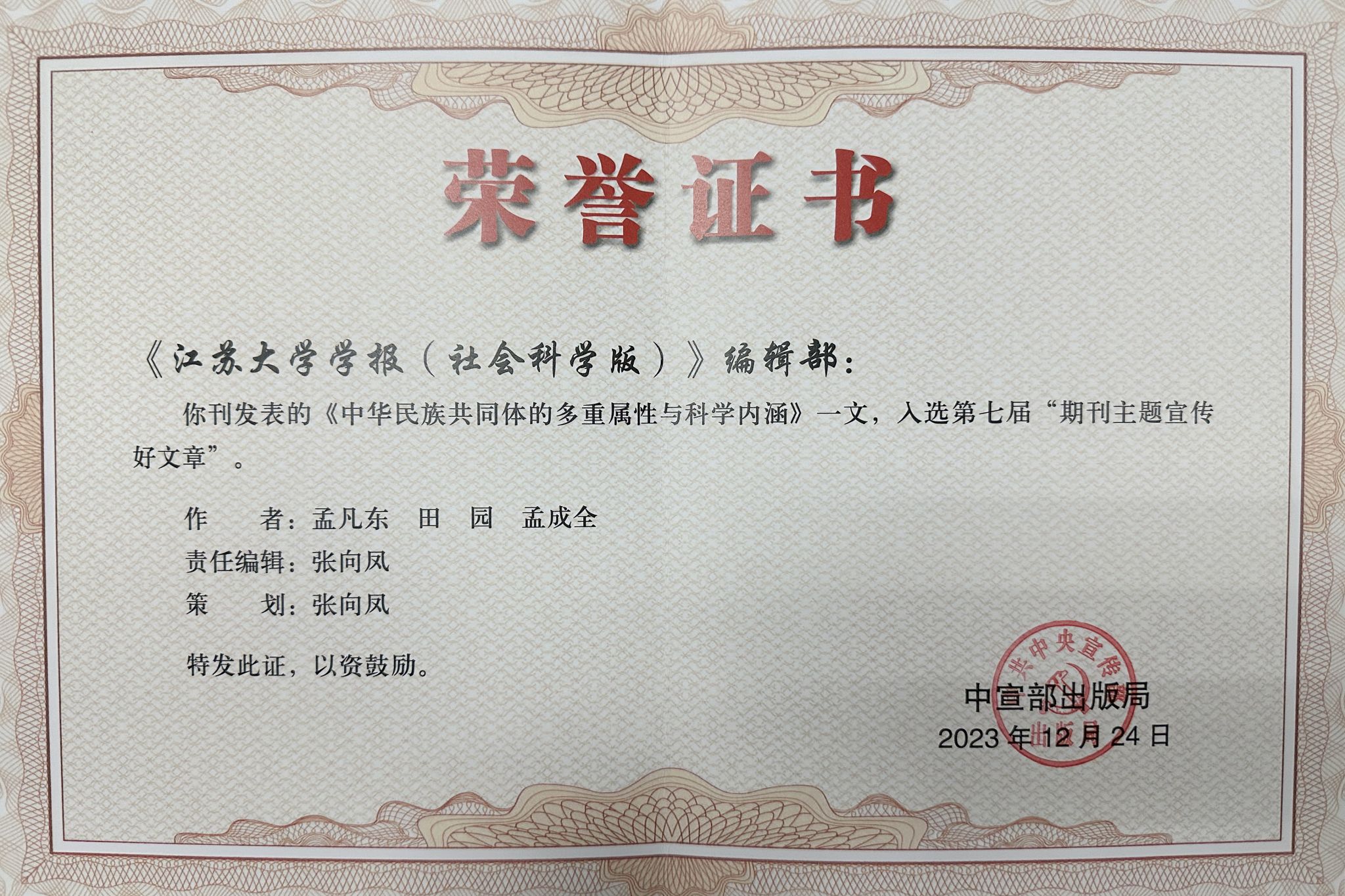 近日,第七届“期刊主题宣传好文章”推荐活动结果揭晓。《爱游戏官方网学报(社会科学版)》发表的《中华民族共同体的多重属性和科学内涵》入选。