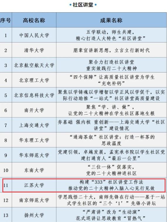 近日,教育部思政司公布了2023年全国高校“一站式”学生社区风采展示活动优秀成果评选结果,我校推荐的4项成果全部入选,是全国所有版块皆有成果入选的6所高校之一。