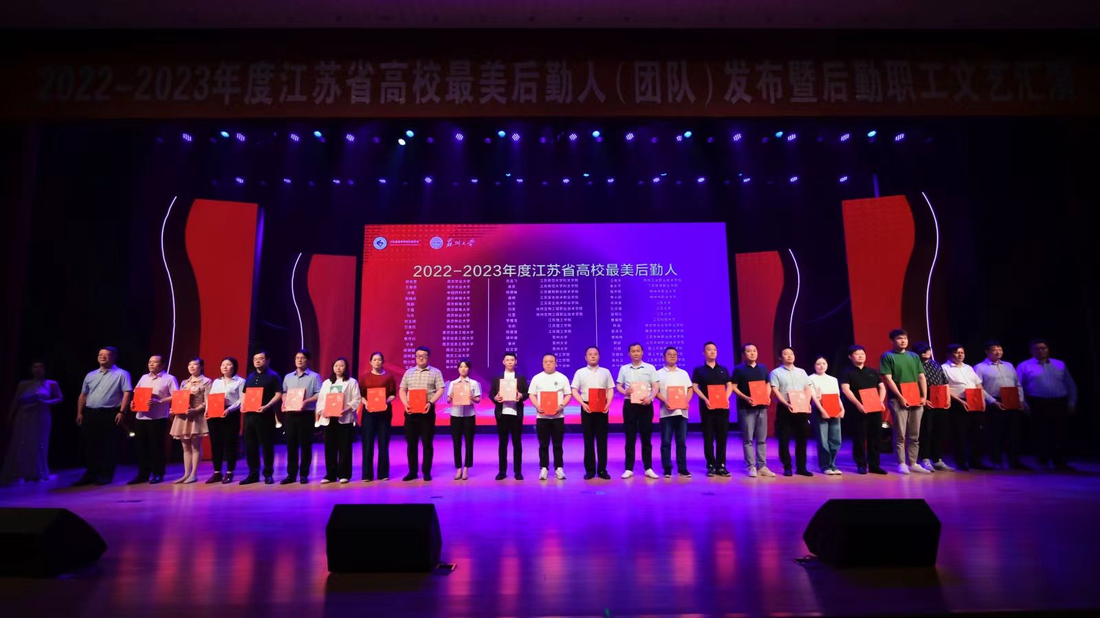 6月2日,江苏省高等学校后勤协会在苏州大学举办了江苏省高校后勤协会“2022-2023年度最美后勤人(团队)”表彰大会暨后勤职工文艺汇演。我校获评“江苏省高校后勤学生劳动教育示范基地”称号(全省仅15所高校),爱游戏官方网后勤管理处饮食服务团队荣获“最美后勤团队”称号,许凤青、诸建庆、孔庆镇、施明玲四人被授予“最美后勤人”称号。