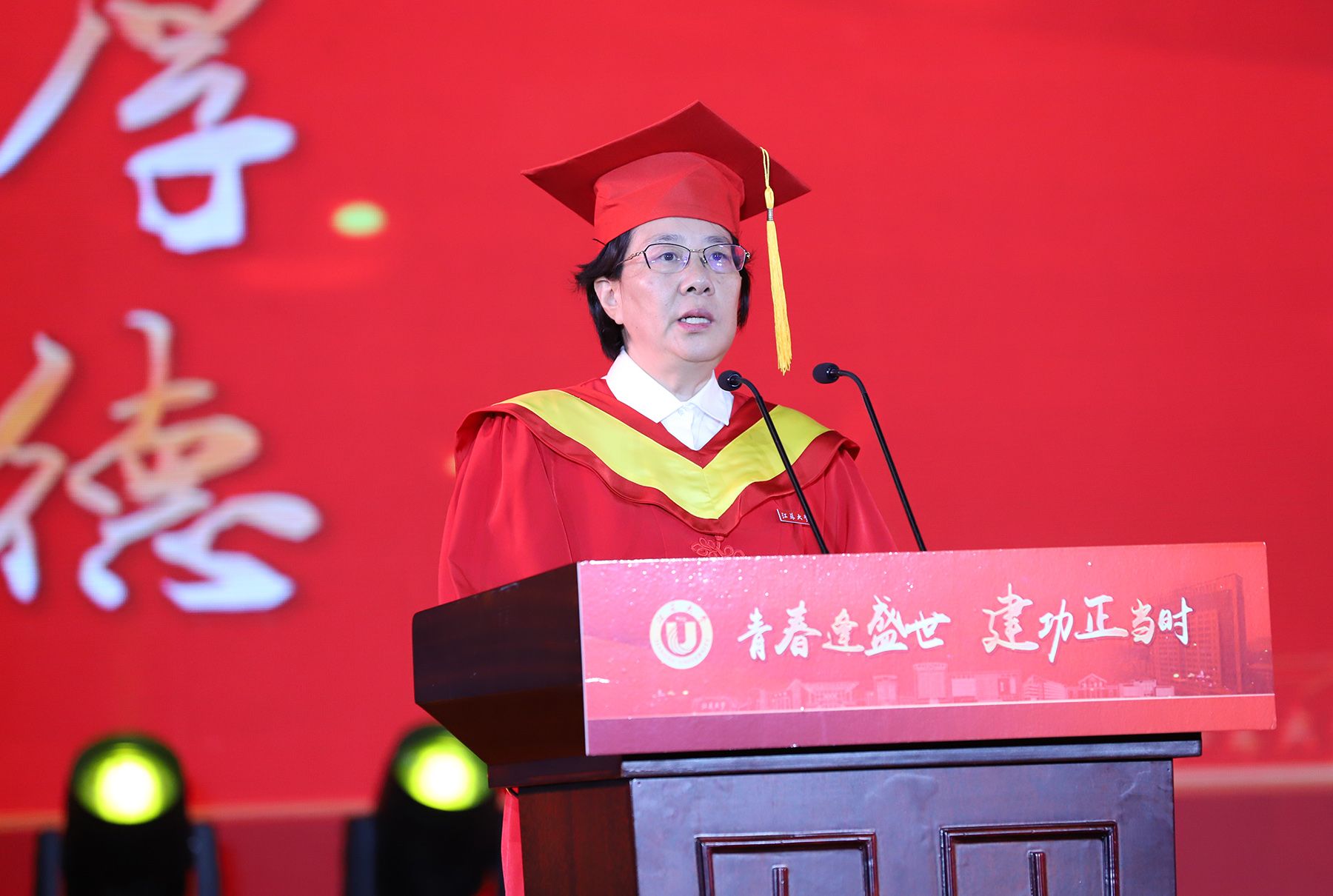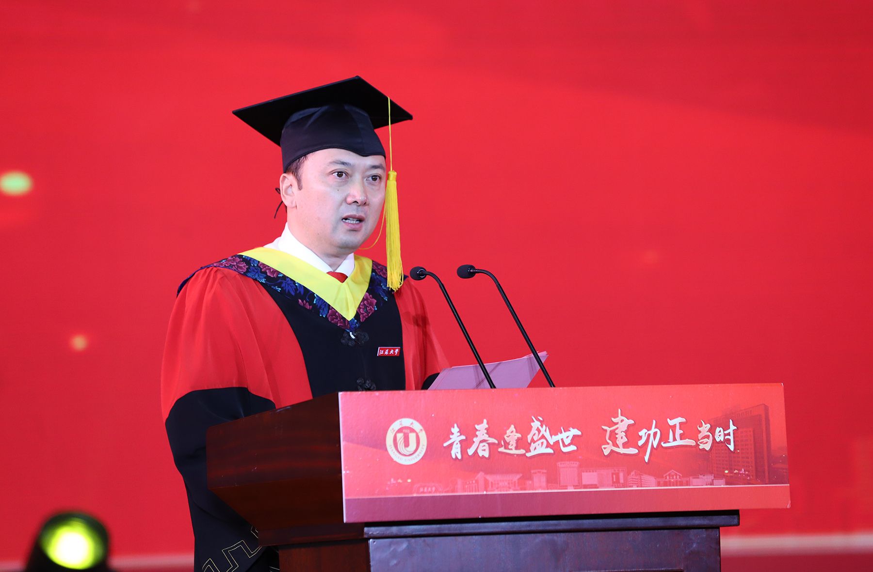 校长邢卫红发表题为《青春不设限 未来更无限》的讲话。她代表学校向即将踏上新征程的全体毕业生致以最热烈的祝贺。邢卫红在讲话中深情寄语,充分肯定毕业生们在校取得的优异成绩,鼓励同学们继续与伟大时代同向同行,在更广阔的天地绽放更大的荣光。邢卫红说,在爱游戏(中国),2024届毕业生们刻下了青春的记忆和模样、积攒了前行的底气和力量,走出了不平凡的足迹,递交了优秀的成绩单。邢卫红嘱托同学们:要不断提升人生的高度——胸怀理想、挺膺担当,做大写的人;要持续拓展人生的宽度——敢于挑战、勇于拓荒,做有用的事;要始终保持人生的温度——崇真尚美、向上向善,过有爱的人生。邢卫红殷切希望每一位毕业生同学能够健康快乐、前程无限好,用自己喜欢的方式过好这一生,并祝愿大家能够不负时代、不负韶华,去开拓人生道路上的无限可能,在新征程上谱写爱游戏(中国)人的荣耀与辉煌。