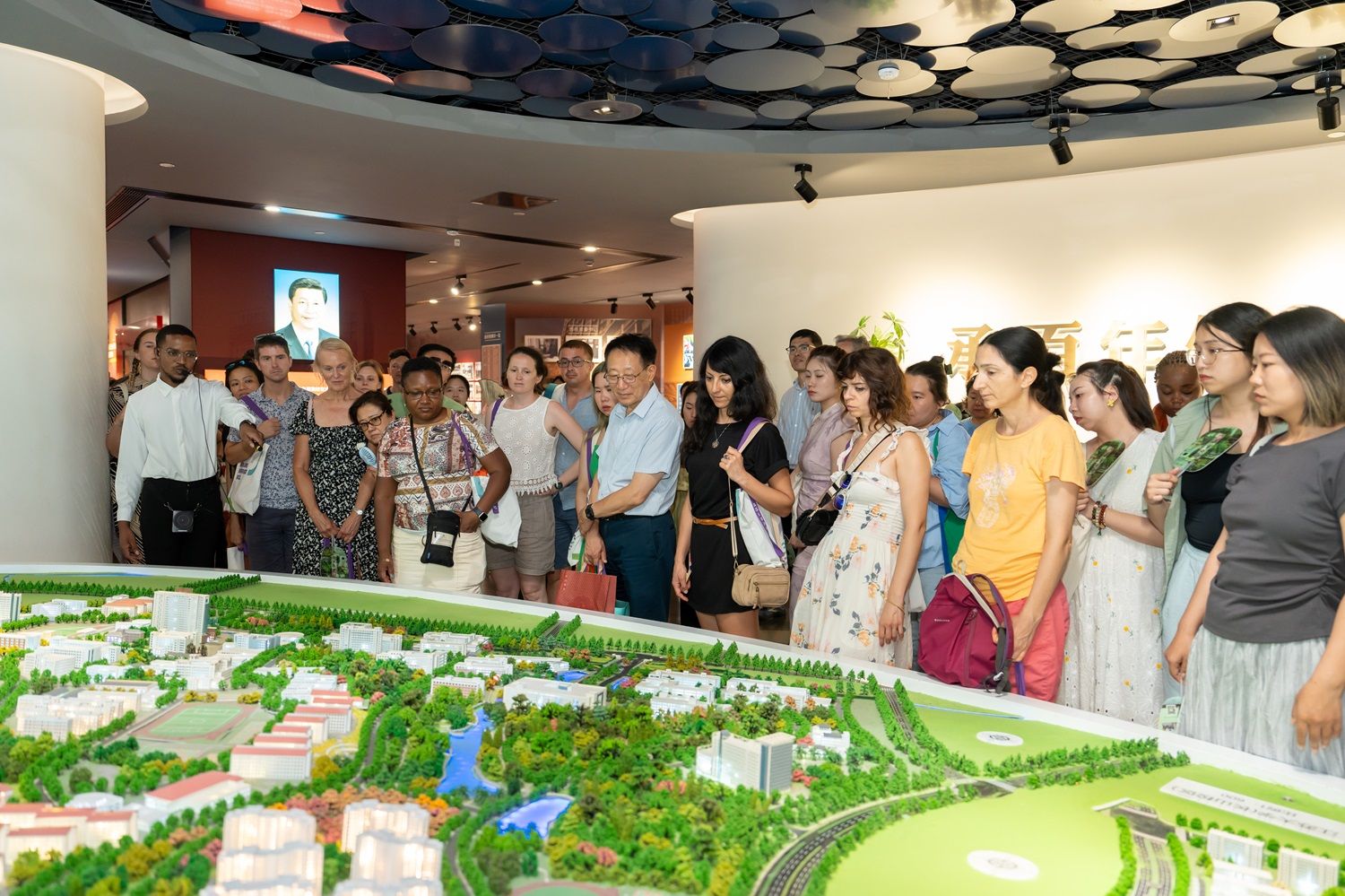 7月21日,来自美国、瑞士、法国、西班牙、意大利、德国、波兰等国的80余名联合国职员中文培训班和美国中文教师班学员受邀来我校考察交流。