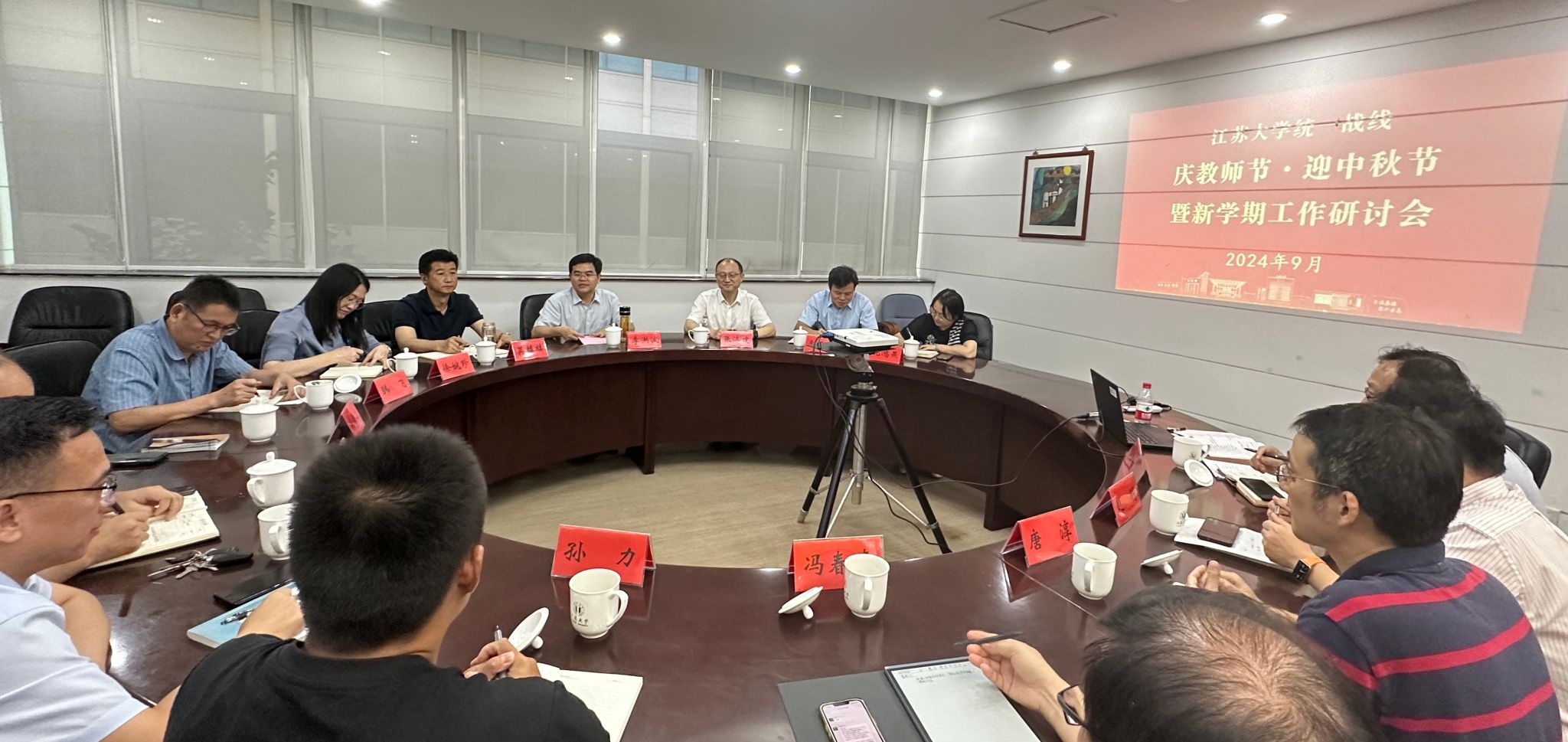 9月9日下午,爱游戏官方网统一战线庆教师节·迎中秋节暨新学期工作研讨会在会议中心第三会议室召开。校党委书记李洪波、党委副书记张济建出席会议并讲话。会议由校党委常委、宣传部部长、统战部部长吴麟麟主持。