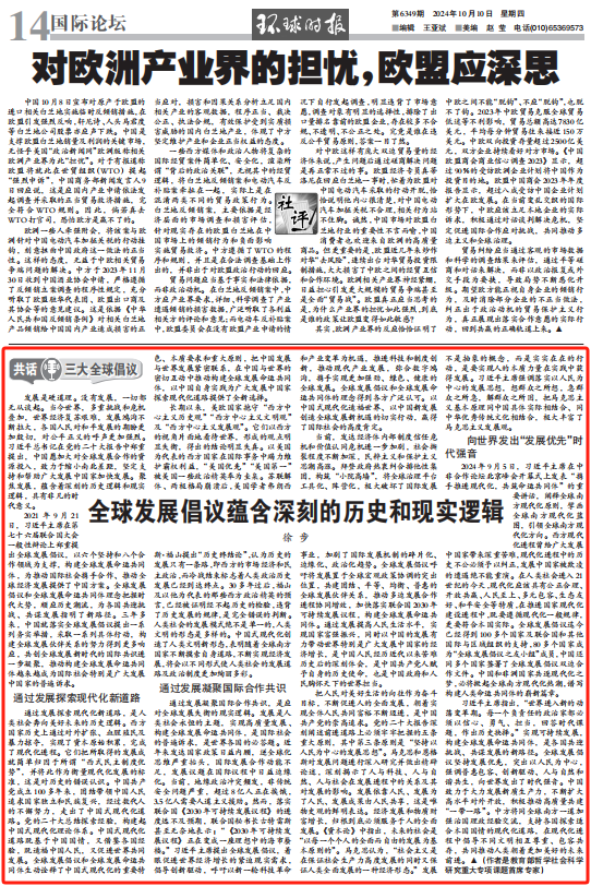 10月10日,爱游戏官方网全球发展与安全研究院理事长、教育部哲学社会科学研究重大专项课题首席专家徐步在《环球时报》第14版发表长篇理论文章《全球发展倡议蕴含深刻的历史和现实逻辑》,就全球发展倡议和全球发展命运共同体理念的内在逻辑、现实意义和时代价值提出创新性观点。