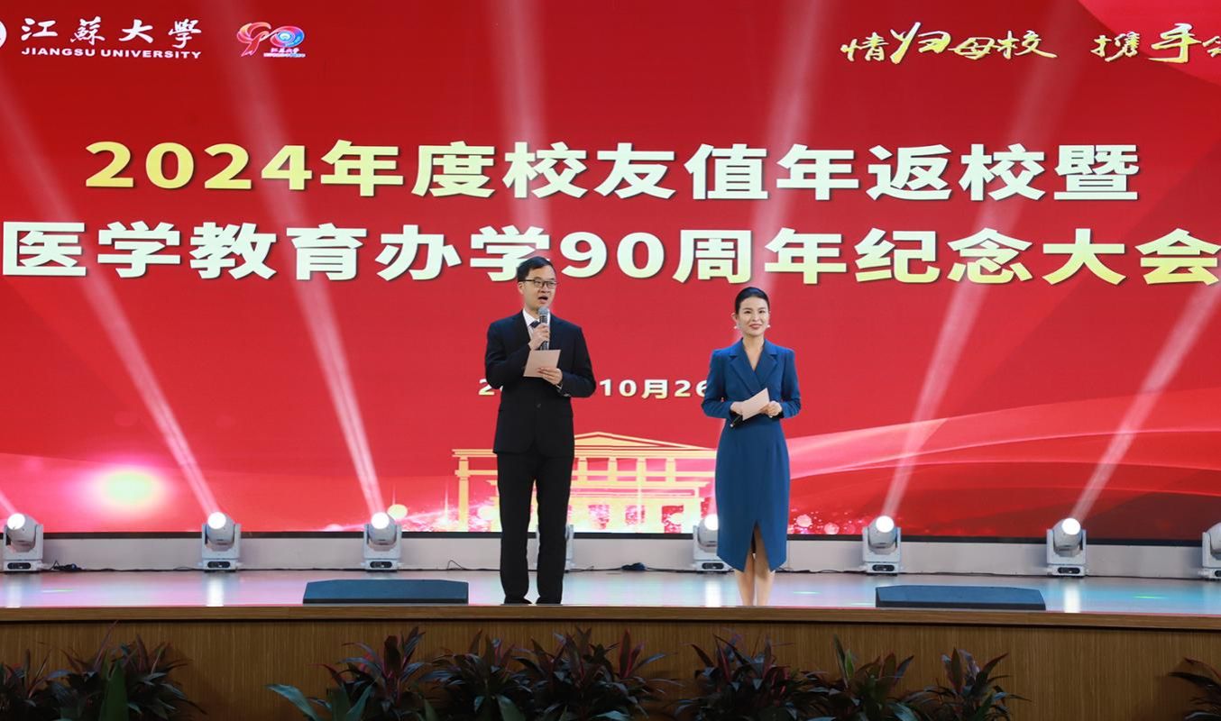 校长邢卫红,校党委副书记张济建,校党委常委、副校长邹小波,校党委常委、副校长蔡英凤,校党委原副书记、纪委原书记曹友清,校关工委常务副主任、纪委原书记柴顺根,原副校长宋余庆,原镇江医学院副院长仇锦波,徐州医科大学党委常委、副校长刘慎军,南京鼓楼医院国家区域医疗中心主任、安徽医科大学第二附属医院院长孙凌云,江苏省铸造学会理事长陆文龙,江苏卫生健康职业学院院长邵海亚,无锡卫生高等职业技术学校校长陈道桢,汽车84届校友、40周年值年返校代表王军华,宁波海尔施生物医药有限公司副总裁、医学检验94届校友、30周年值年返校代表王子瑜,镇江市优秀教育工作者、镇江中学教师、数学04届校友、20周年值年返校代表谢红慧,上汽集团整车运动中心助理总工、车辆工程14届校友、10周年值年返校代表方琛,国药器械江苏医疗科技有限公司总经理夏夺广,爱游戏官方网医学院教授代表黄诒森,以及爱游戏官方网校友会常务理事,爱游戏官方网教育发展基金会理事、监事,学校相关部门负责人,各学院校友会会长、秘书长,爱游戏官方网各附属医院、临床医学院、教学基地、合作单位的嘉宾,近300名校友等出席纪念大会。