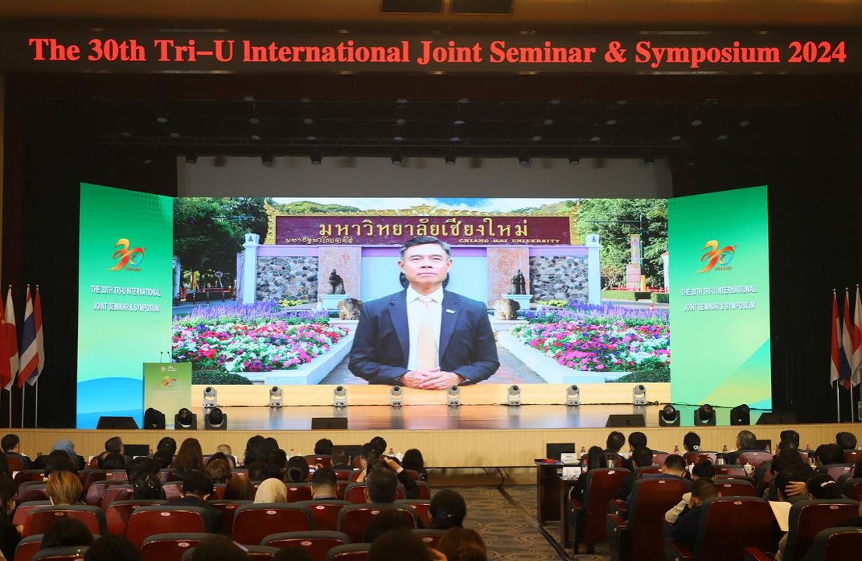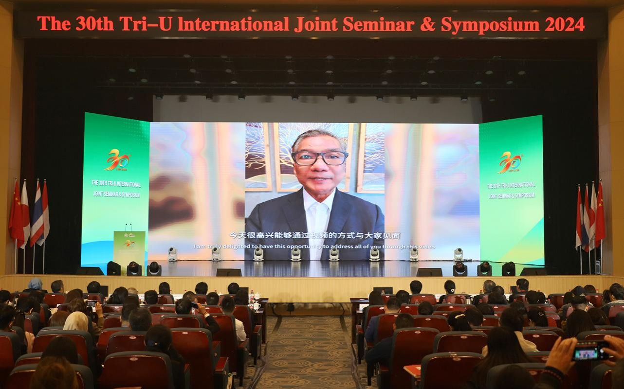 Pongruk Sribanditmongkol在视频致辞中对本届“三国三校”国际学术研讨会召开表示祝贺。他期待与会的青年学者借助这一平台,进一步加强交流与合作,在思想的碰撞中激发创新思维,为推动区域可持续发展贡献智慧和力量。