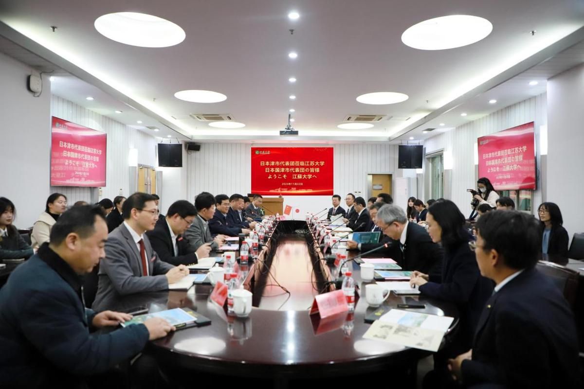 11月22日,在镇江市人民政府外事办公室陪同下,日本津市市长前叶泰幸、议长青山昇武率领的代表团一行来访爱游戏官方网,校党委书记李洪波在会议中心第二报告厅与代表团成员进行了友好会谈。校长办公室、国际合作与交流处、校友会与对外联络办公室、农业工程学院、汽车与交通工程学院、艺术学院、外国语学院、海外教育学院相关人员及外国语学院日语系学生代表参加会谈。