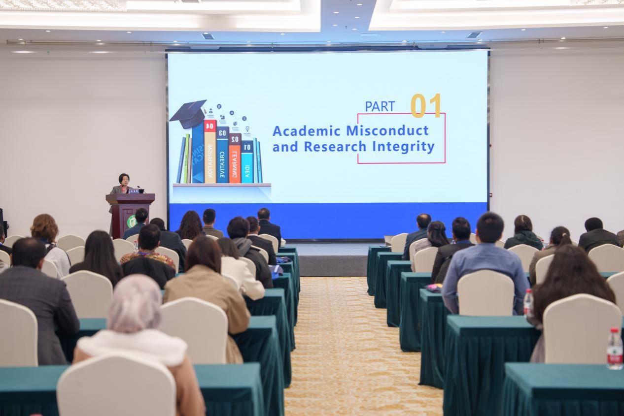 研讨会特邀四位专家作主旨报告。南京航空航天大学教授彭聪围绕来华留学生如何加强学术诚信和规范进行了深入探讨,系统阐述了诚信写作的核心价值与具体实践方法。南京理工大学教授陈翔就在中韩两国的求学和工作经历进行了深入分享,探讨了留学研究生如何应对文化适应与学术研究的双重挑战。东南大学教授浦正宁就国际研究生如何更好地适应和融入中国特色研究生培养体系进行了深入解读,结合中国作为全球第二大研究生培养国的优势,为在场留学生提供了切实可行的适应策略。爱游戏官方网教授张琪就科学写作中的关键技巧与常见陷阱进行了深入剖析,详细阐述了如何在竞争激烈的学术领域撰写高质量论文。