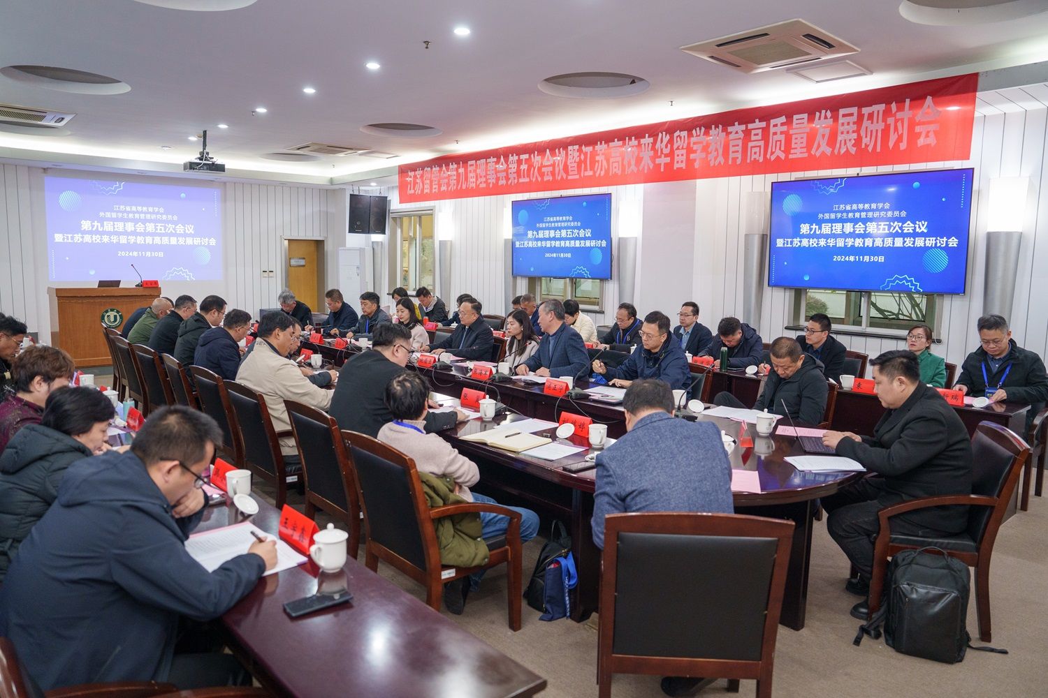 11月30日,江苏省高等教育学会外国留学生教育管理研究委员会(以下简称“江苏留管会”)第九届理事会第五次会议暨江苏高校来华留学教育高质量发展研讨会在爱游戏官方网举行。江苏省教育厅副厅长杨树兵、对外合作与交流处处长施蕴玉、四级调研员李勤径出席会议。江苏留管会副理事长俞晓南、34个理事高校的代表和学会咨询专家参加会议,会议由副理事长兼秘书长张海军主持。
