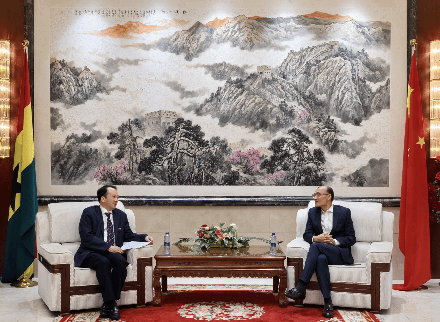 在加纳访问期间,代表团拜访了中国驻加纳大使馆,大使童德发、公使衔参赞李旸、政治处主任吕明昭等参加会见。童德发对代表团到访表示热烈欢迎,并详细介绍了加纳的发展概况和与华合作情况,高度赞赏我校与加纳高校的合作成效,鼓励并全力支持我校与加纳高校开展合作。代表团还访问了加纳中华工商总会,任旭东与会长唐宏等就国外校企合作模式、订单式人才培养、加纳社会发展情况和急需人才等话题进行了深入讨论,并达成持续强化沟通、互相支持共赢的合作意向。