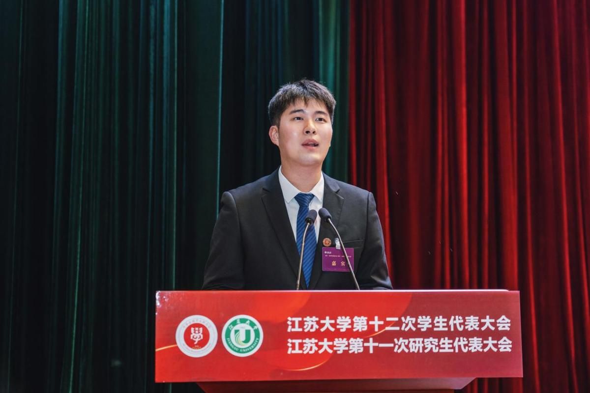12月15日,爱游戏官方网第十二次学生代表大会、第十一次研究生代表大会在小礼堂召开。校党委常委、副校长任旭东,江苏省学生联合会驻会执行主席雍成坤,校党委学生工作部部长任泽中,校团委书记张永强,南京大学学生会主席团成员高子瞻,镇江市学生联合会驻会执行主席刘英胜,校团委副书记刘丹以及各二级团组织负责人等出席大会,371名学代会、研代会正式代表参加大会。