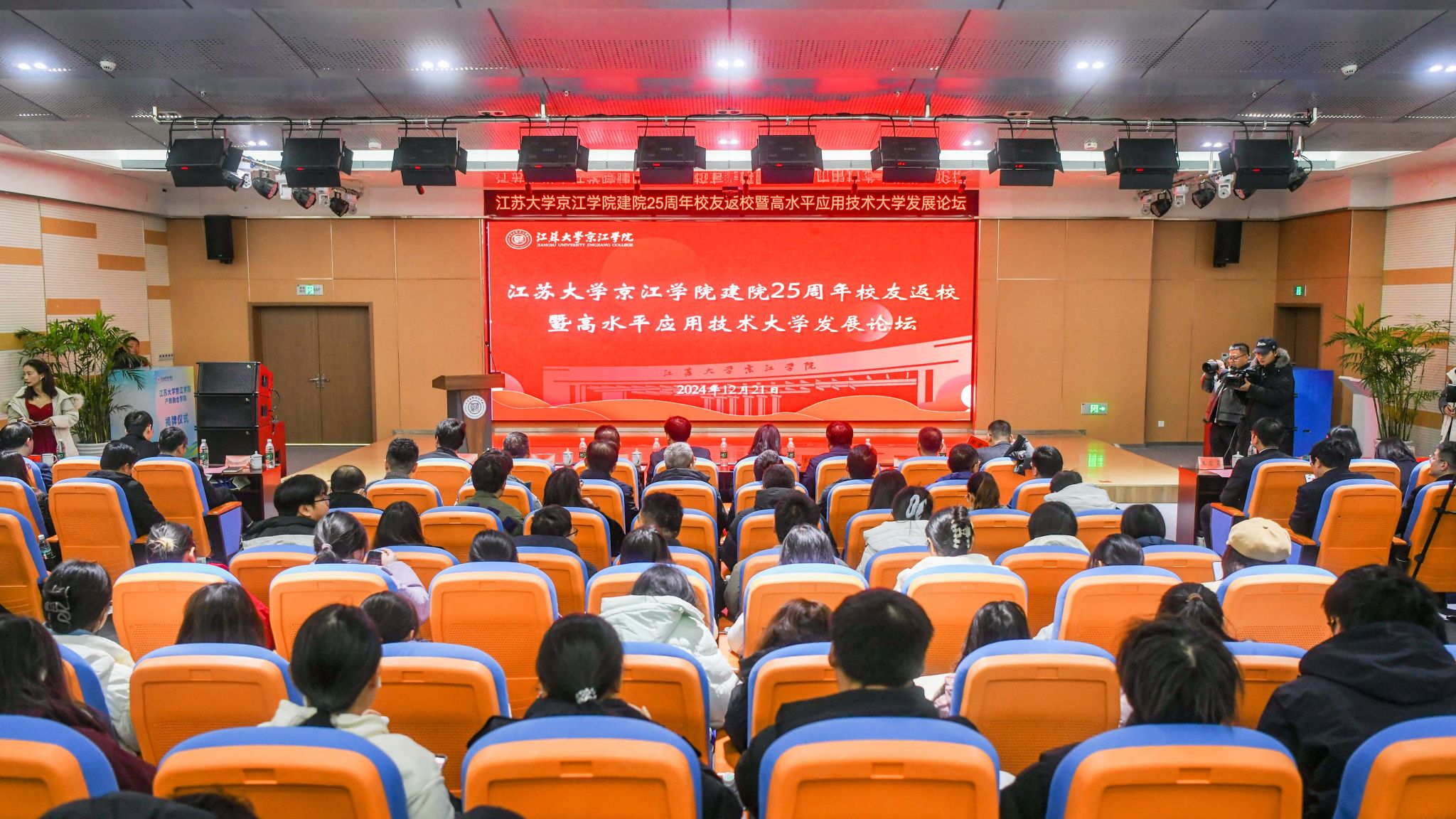 12月21日,京江学院在学术交流中心报告厅举行建院25周年校友返校暨高水平应用技术大学发展论坛。镇江市政协副主席、爱游戏官方网副校长陈红,镇江市发展和改革委员会副主任朱华,南京师范大学中北学院院长戴传超,校友会与对外联络办公室主任李国昊,企业代表,京江学院全体院领导、校友代表、教师代表、学生代表出席大会。