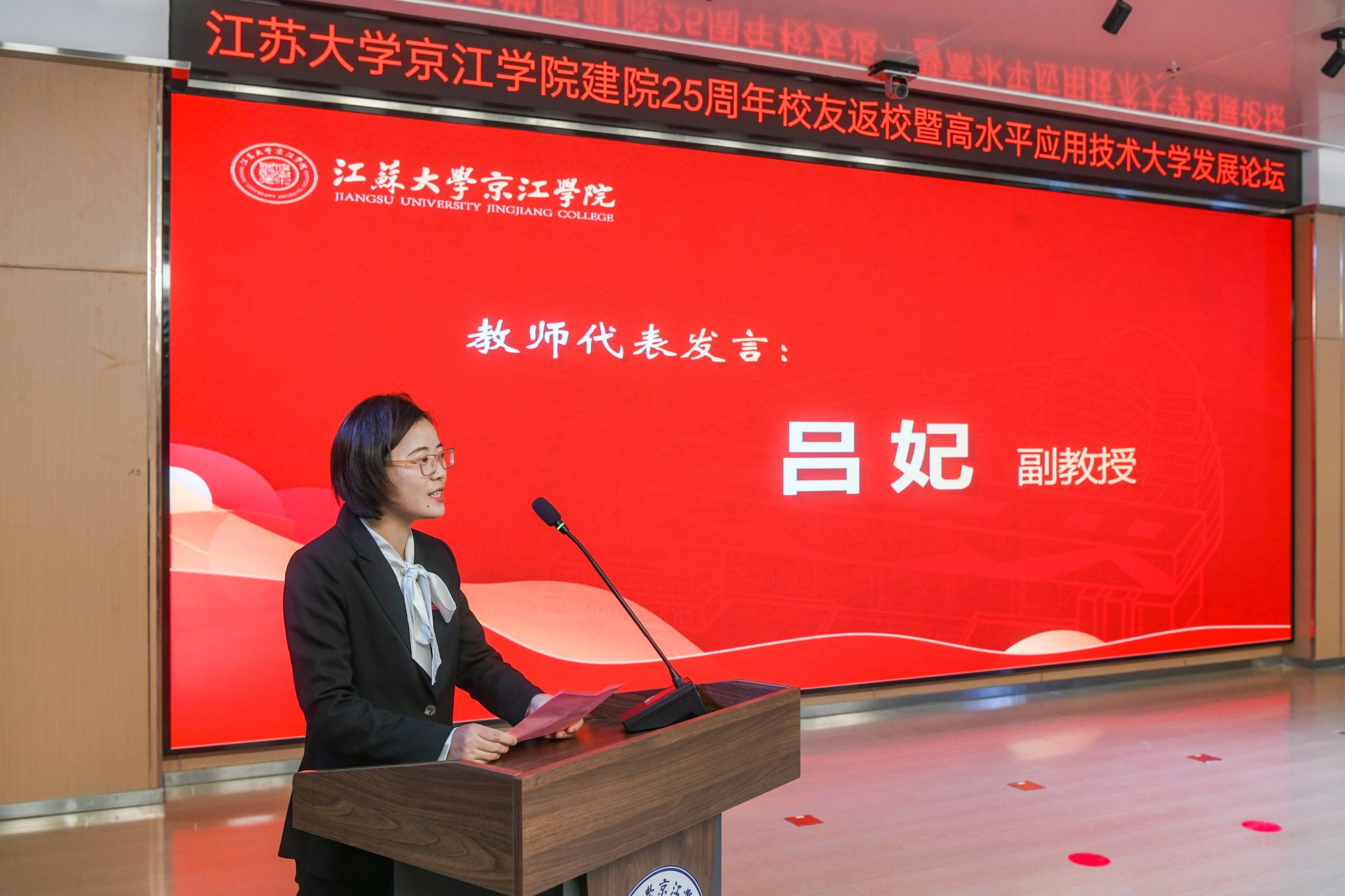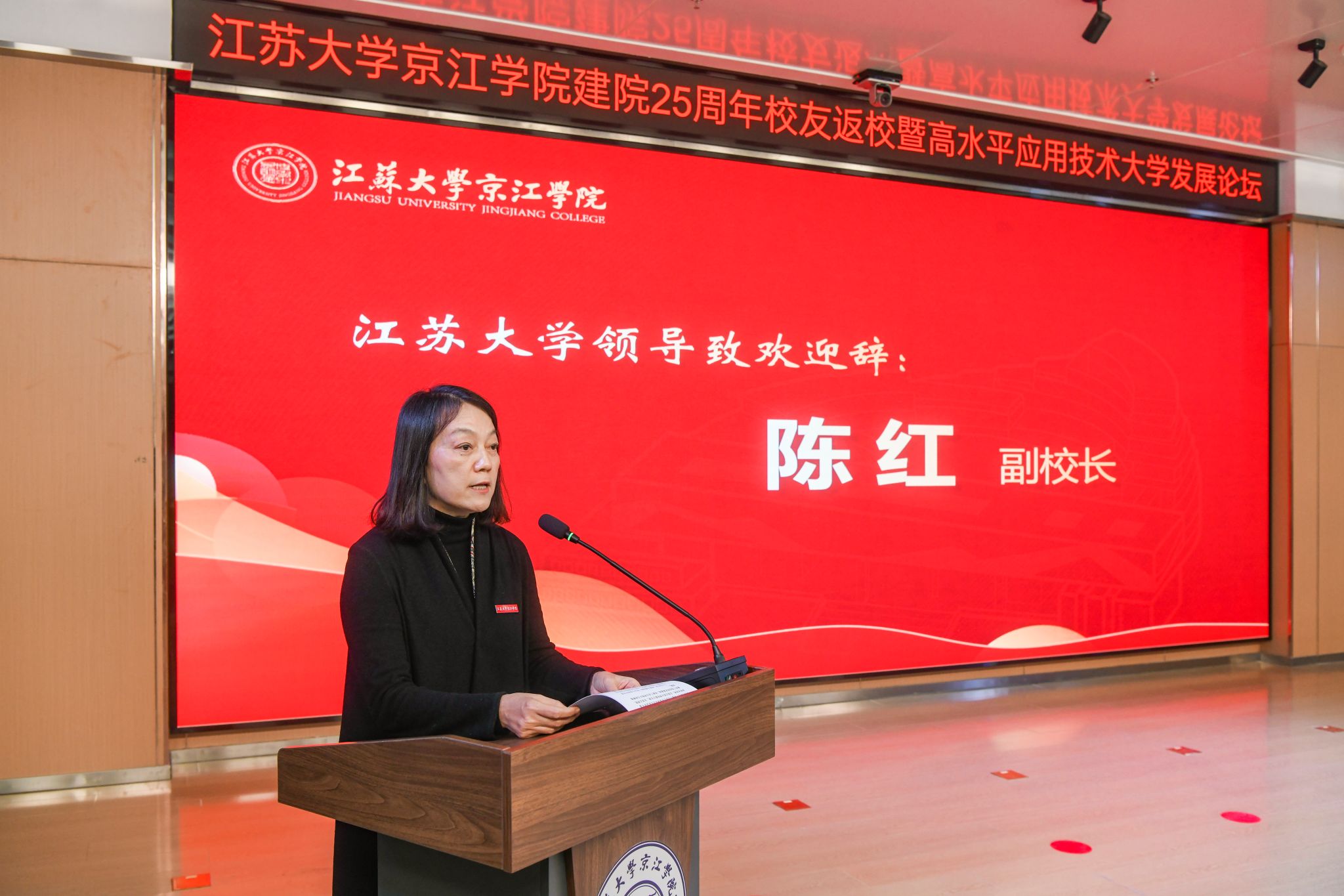 陈红致欢迎辞,她代表爱游戏官方网向各位领导、各位嘉宾表示欢迎,向全体师生员工、广大校友致以问候,向关心支持京江学院发展的各级领导、各界朋友、兄弟高校表示感谢。陈红表示,25年来,京江学院紧紧依托母体爱游戏官方网,事业发展呈现新面貌,高质量发展迈出新步伐。她希望全体师生同心协力,继续为实现高水平应用技术大学目标砥砺前行,为区域经济社会发展作出新的贡献。
