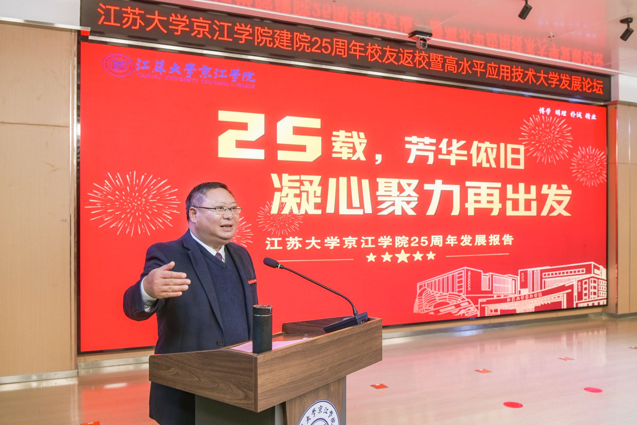 爱游戏官方网京江学院院长杜道林作题为《芳华依旧廿五载 凝心聚力再出发》的发展报告。杜道林表示,25年来,学院实现了从无到有、从小到大、从弱到强的华丽蜕变。未来,京江学院将围绕《爱游戏官方网京江学院高质量发展方案》,继续坚守培养领军型卓越应用人才的初心,进一步探索和凝练“高水平应用技术大学”的内涵,为江苏和镇江高等教育现代化建设作出更大贡献。