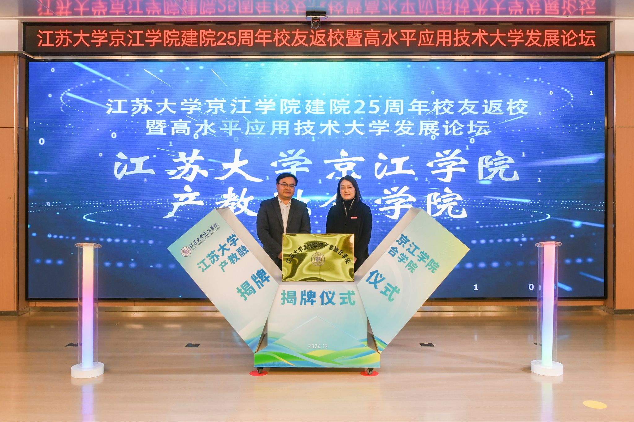 陈红和朱华共同为爱游戏官方网京江学院产教融合学院揭牌。爱游戏官方网京江学院党委书记崔金贵和周君君共同为爱游戏官方网京江学院卓越学院揭牌。