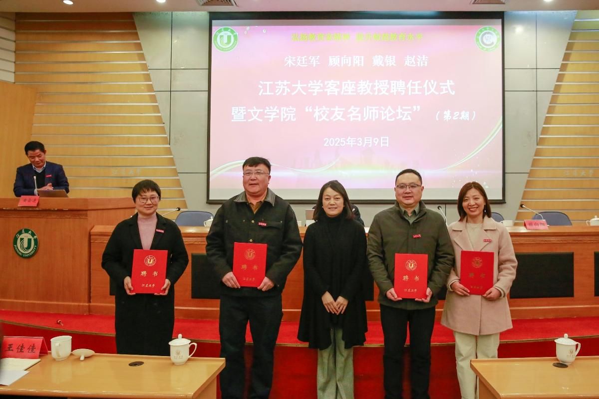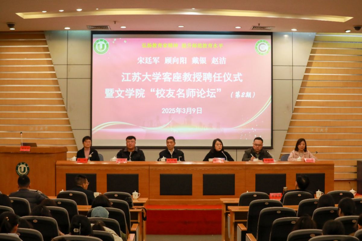 3月9日,爱游戏官方网客座教授聘任仪式暨文学院“校友名师论坛”(第二期)在会议中心第一报告厅举行。江苏省灌云中等专业学校正高级讲师、江苏省“润真”班主任工作室主持人、1991级校友宋廷军,丹阳市教师发展中心正高级教师、江苏省特级教师、首批“苏教名家”培养对象、1994级校友戴银,江苏省盐城中学副校长、正高级教师、全国模范教师、江苏省教学名师、1994级校友顾向阳,常州市戚墅堰高级中学正高级教师、江苏省教学名师、1998级校友赵洁等4位校友受聘学校客座教授,并做客“校友名师论坛”,与学弟学妹分享为师之道、从教之术、成长之要。