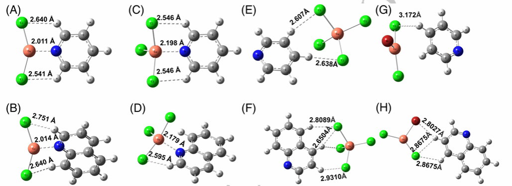 该工作成功制备了一系列铜基离子液体[Bmim]Cl/CuCl2-X,通过改变阴阳离子比例调控阴离子构型并优化其性能。实验表明,当阴阳离子比为1:1时([Bmim]Cl/CuCl2-1),其展现出卓越的萃取脱氮(EDN)性能,结合拉曼光谱与理论计算发现,铜的未占据轨道以及[CuCl3]-中的氯离子与ONCs中的氮原子之间形成了有效的配位,这种Lewis酸碱相互作用对于实现深度EDN至关重要。该工作不仅提出了一种高效的铜基离子液体用于从燃油中深度去除ONCs,而且还为理解和调控EDN过程中的基本相互作用提供了深入认识。