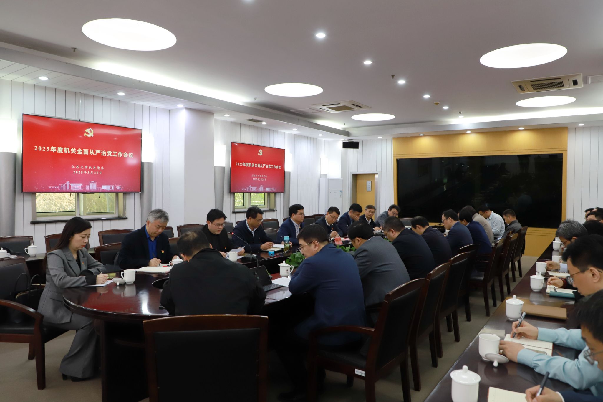 3月25日,机关党委在会议中心第二报告厅召开2025年度全面从严治党暨警示教育工作会议。校党委书记李洪波出席并讲话,机关党委委员、各党支部书记参加会议。