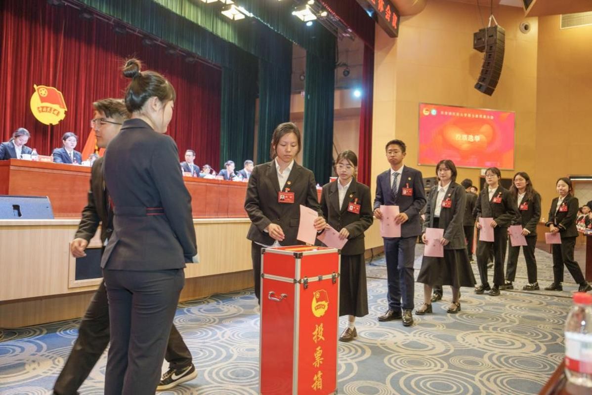 在第二次全体会议上,大会依次审议通过了大会选举办法(草案)、大会选举工作人员名单(草案),并选举产生共青团爱游戏官方网第七届委员会;会议还审议通过了工作报告决议(草案),并宣读了《爱游戏官方网第七次团代会倡议书》。大会在《国际歌》声中闭幕。
