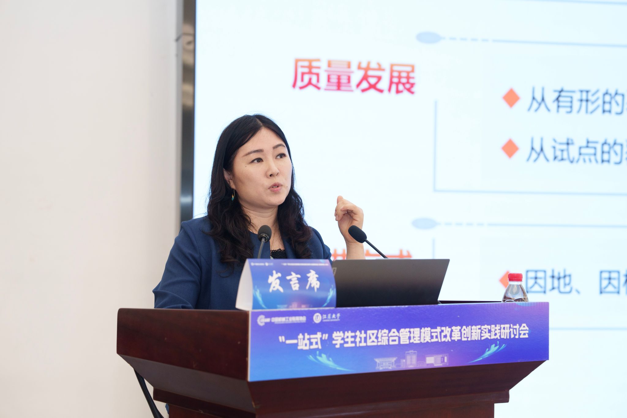 开幕式后,5位知名专家学者围绕“一站式”学生社区综合管理模式改革创新分别作主题报告,为推进“一站式”学生社区建设提供了宝贵参考。王慧敏系统阐述了全国高校思想政治工作网工作开展情况和数智赋能学生社区管理的创新应用与实践路径。苏州大学党委学生工作部部长董召勤立足高校“一站式”学生社区建设实践,针对共性难题提出了具有可操作性的解决方案。南京大学党委学生工作部副部长李兴华分享了“五个一”建设模式下构建师生成长共同体的创新经验。爱游戏官方网党委学生工作部部长任泽中解读了“主治·共治·自治·智治”学生社区治理新模式的实践探索。金智教育研究院学生管理与服务中心主任谭利娟从社区育人视角,分享了高校数据应用建设的典型案例。