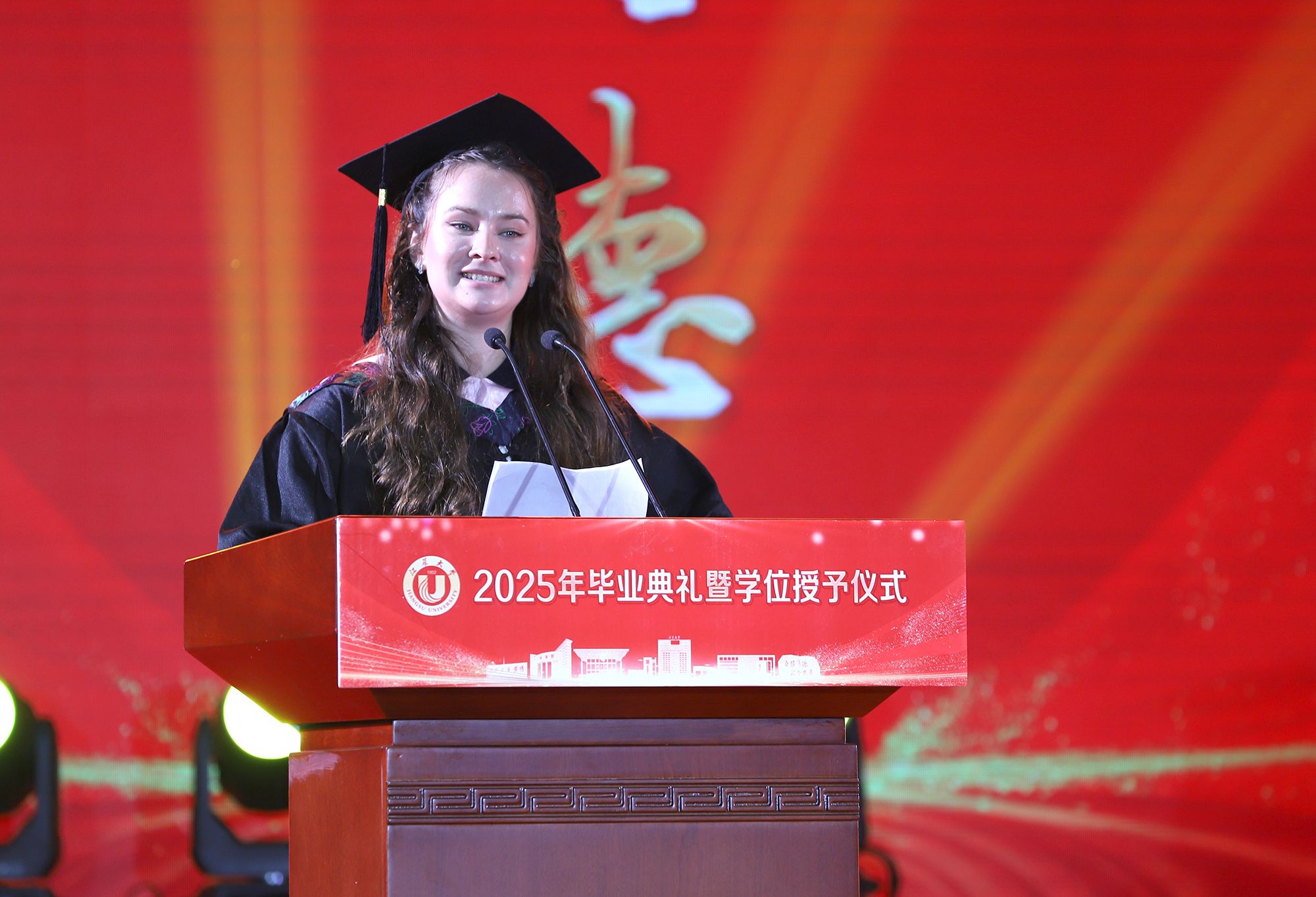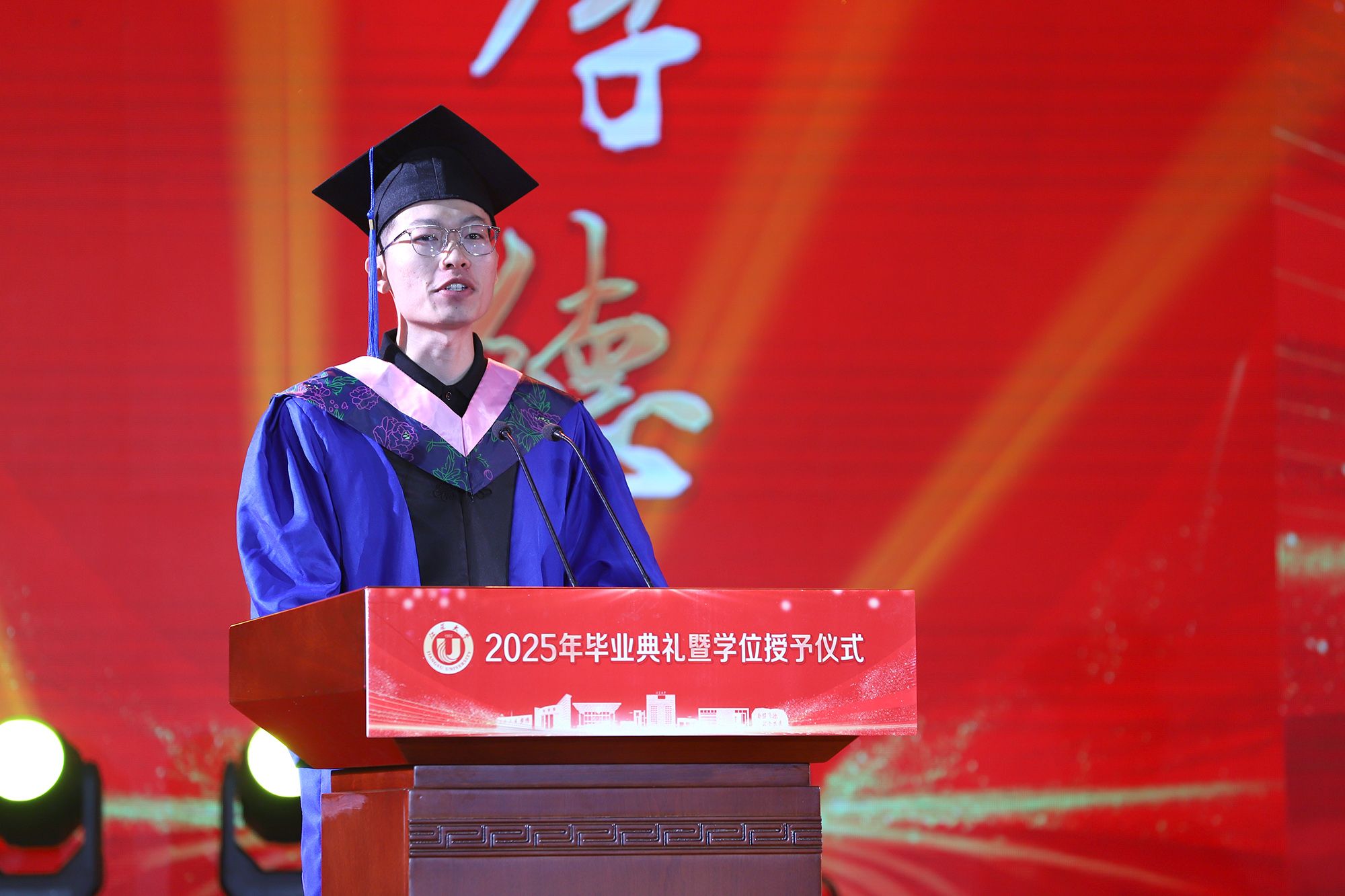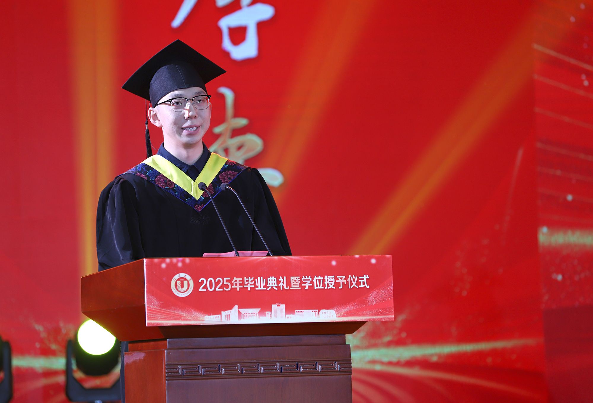 校长邢卫红发表题为《让热爱照见未来》的讲话,代表学校向全体毕业生致以热烈祝贺,向悉心关怀同学的师长、辛勤养育同学的父母以及默默支持大家成长的各界朋友,致以崇高的敬意和衷心的感谢。邢卫红说,大学更深层的意义,在于教会同学们以“热爱”为火种,照亮前路的漫长与未知。这份源自内心的热爱,已化作同学们成长路上的璀璨星光。每一位爱游戏(中国)学子奋斗的足迹、闪耀的成绩,共同汇聚成爱游戏(中国)校园最亮眼的青春图谱,照亮前行的每一步。邢卫红说,优秀没有标准答案,每一份热爱都定义着独特的精彩,每一次坚持都谱写着动人的篇章。她希望同学们因热爱而选择,在变革的时代中寻找内心的确定;因热爱而坚持,在平凡的岗位上成就非凡的业绩;因热爱而绽放,在生活的微光中积攒前行的力量。邢卫红希望同学们永远保持对生活的热忱,于细微处感受温暖美好,在热爱中拥抱天地辽阔。她祝愿大家带着爱游戏(中国)赋予的热爱与力量,勇敢奔赴山海,让热爱之光照见无比璀璨的未来。