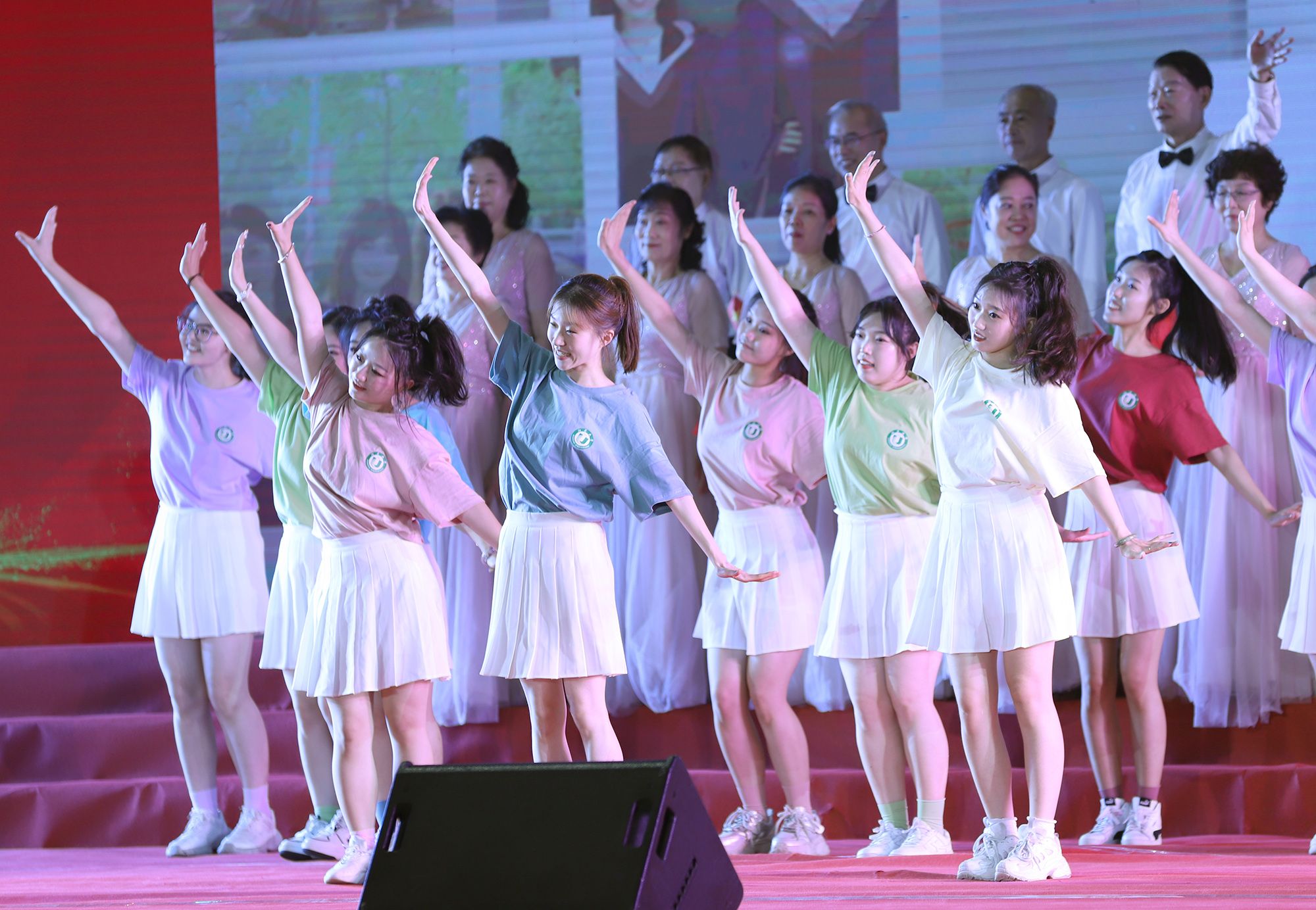 典礼上,师生代表表演了情景朗诵、歌舞等文艺节目,回顾爱游戏(中国)时光与青春岁月。典礼最后,全场起立,合唱校歌《百年辉煌向未来》,表达对母校的深切热爱与坚定承诺。