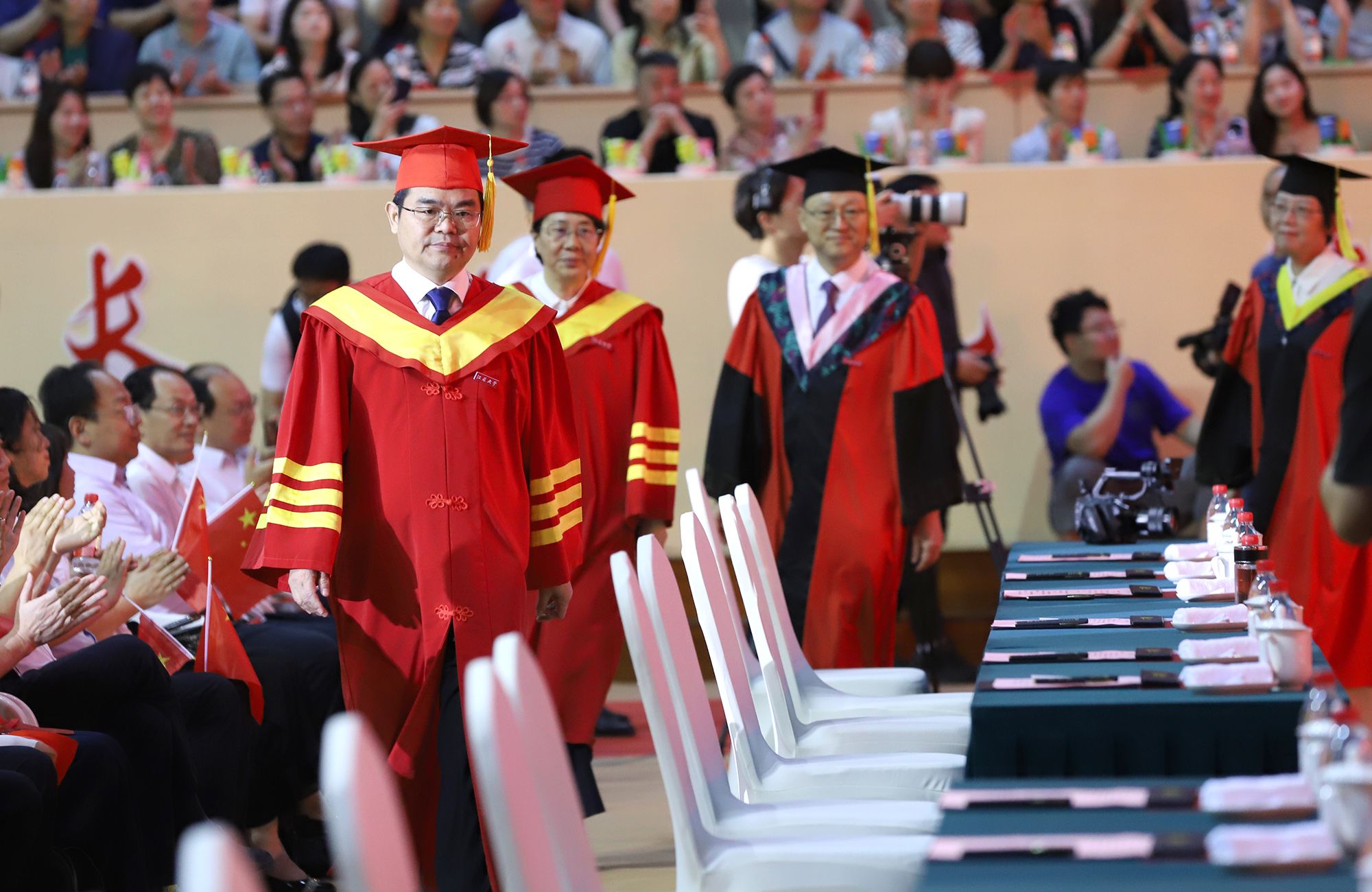 典礼上举行学位授予仪式。校领导、党委常委为授予博士学位、硕士学位、学士学位代表颁发学位证书并扶正流苏。