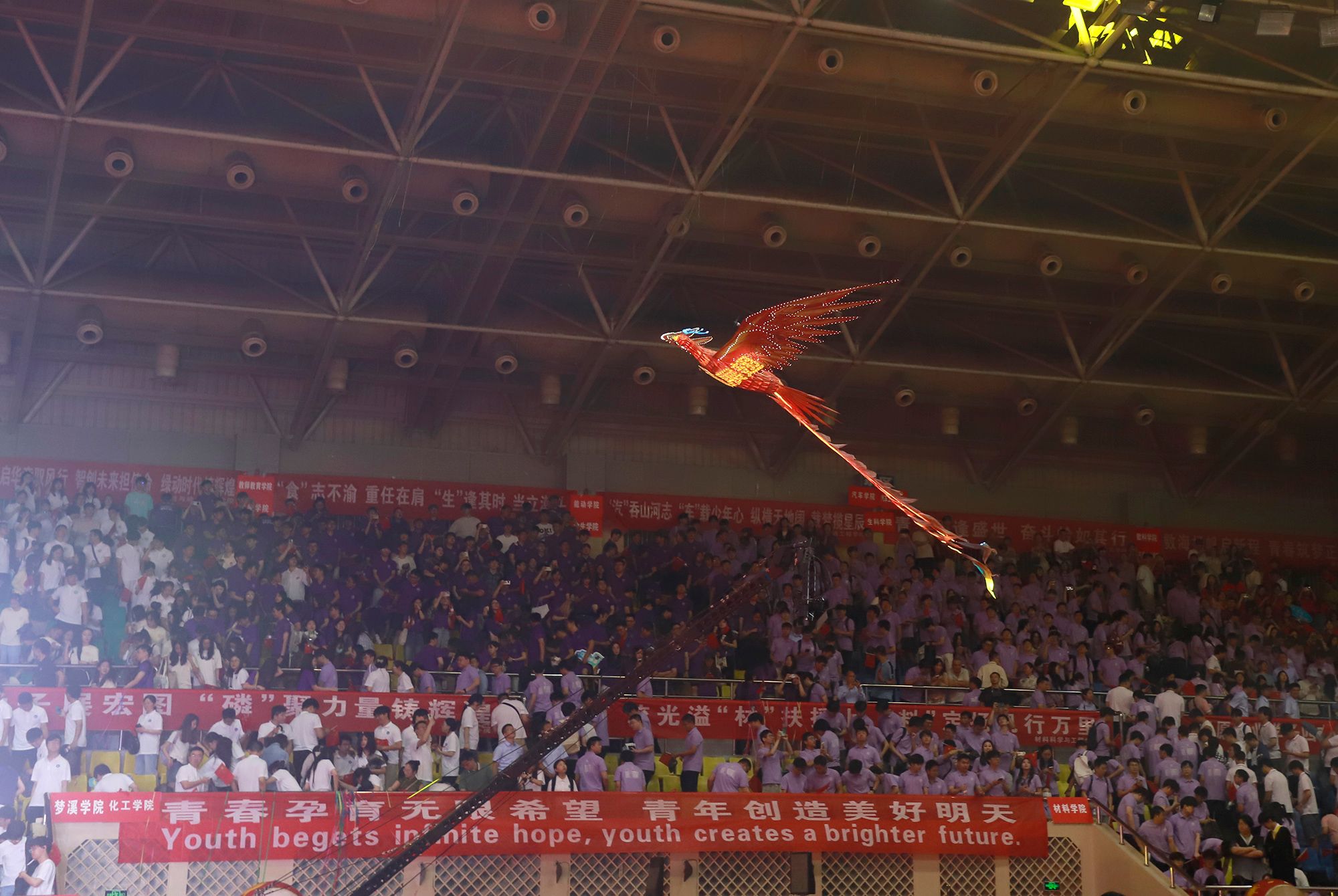 典礼前,毕业生代表演唱了《凤凰花开的路口》《第一天》《本草纲目》《大中国》等暖场歌曲。
