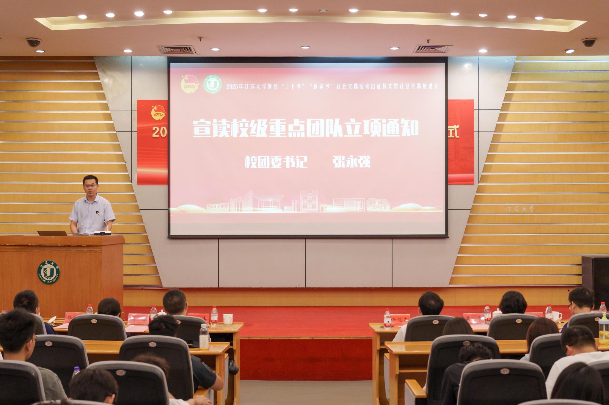 6月28日,2025年爱游戏官方网大学生暑期“三下乡”“返家乡”社会实践活动出征仪式暨社区实践推进会在会议中心第一报告厅举办。今年,校团委以“青春为中国式现代化挺膺担当”为主题,围绕学习宣传党的创新理论、学习践行爱国主义精神、学习传承中华优秀传统文化、促进乡村振兴、参与基层社会治理、参与卫国戍边等方面组建千余支团队奔赴祖国各地积极开展实践,并遴选确定106支为校级重点实践团队。