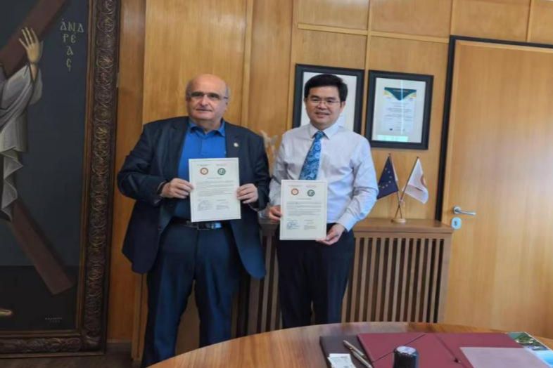 6月23日,代表团首站访问希腊帕特雷大学(University of Patras),与校长克里斯托斯•布拉斯(Christos Bouras)、学术与国际事务副校长迪奥尼修斯•曼察维诺斯(Dionissios Mantzavinos)举行会谈。双方正式签署合作意向书,致力于创建“一带一路”智慧农业技术与装备国际联合实验室,同步启动学生互换交流与境外办学项目,标志着中希高校合作迈入深度融合新阶段。当日,代表团还拜访了历史悠久的希腊雅典科学院,美国国家工程院院士、希腊科学院院士、希腊雅典国立技术大学化学工程教授Doros Nicolas Theodorou等热情接待。双方就开拓科技合作渠道、促进爱游戏官方网与希腊雅典科学院开展技术交流、高层次人才引进与输出达成共识。