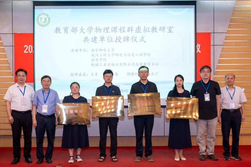 会上,王青、杜永春、南京邮电大学教授颜晓红、南京航空航天大学教授施大宁分别为南京邮电大学、韶关学院、武汉工程大学邮电与信息工程学院、机械工业出版社有限公司高等教育分社四所共建高校教师代表授牌,标志着教育部大学物理课程群虚拟教研室的共建合作正式启动。杜永春为爱游戏官方网实践教学基地、安徽省科大奥锐科技有限公司代表授牌。