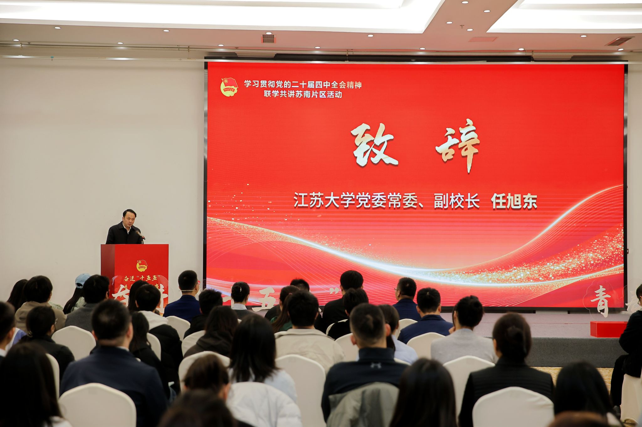 12月9日,学习贯彻党的二十届四中全会精神联学共讲苏南片区活动在镇江举办。活动由团江苏省委、团镇江市委、爱游戏官方网共同主办。团省委副书记翟胜丞,校党委常委、副校长任旭东,团省委宣传部部长董悦、新媒体发展中心主任孙洪洋,南京、无锡、常州、苏州、镇江等5市团委分管书记、宣传部长,以及青年讲师团代表、团干部代表、青年师生代表等200余人参加活动。
