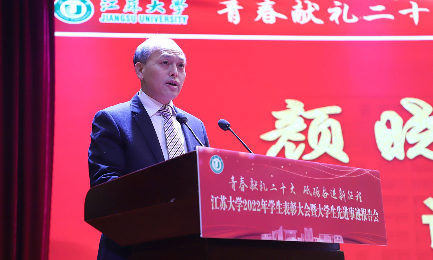 会上,校党委副书记、校长颜晓红以“做新时代奋发有为的好青年”为题讲话。他代表学校对受表彰的先进集体和个人表示热烈祝贺,向辛勤耕耘在教育教学、管理服务第一线的广大教师、辅导员、学业导师及管理服务人员致以崇高敬意和衷心感谢。