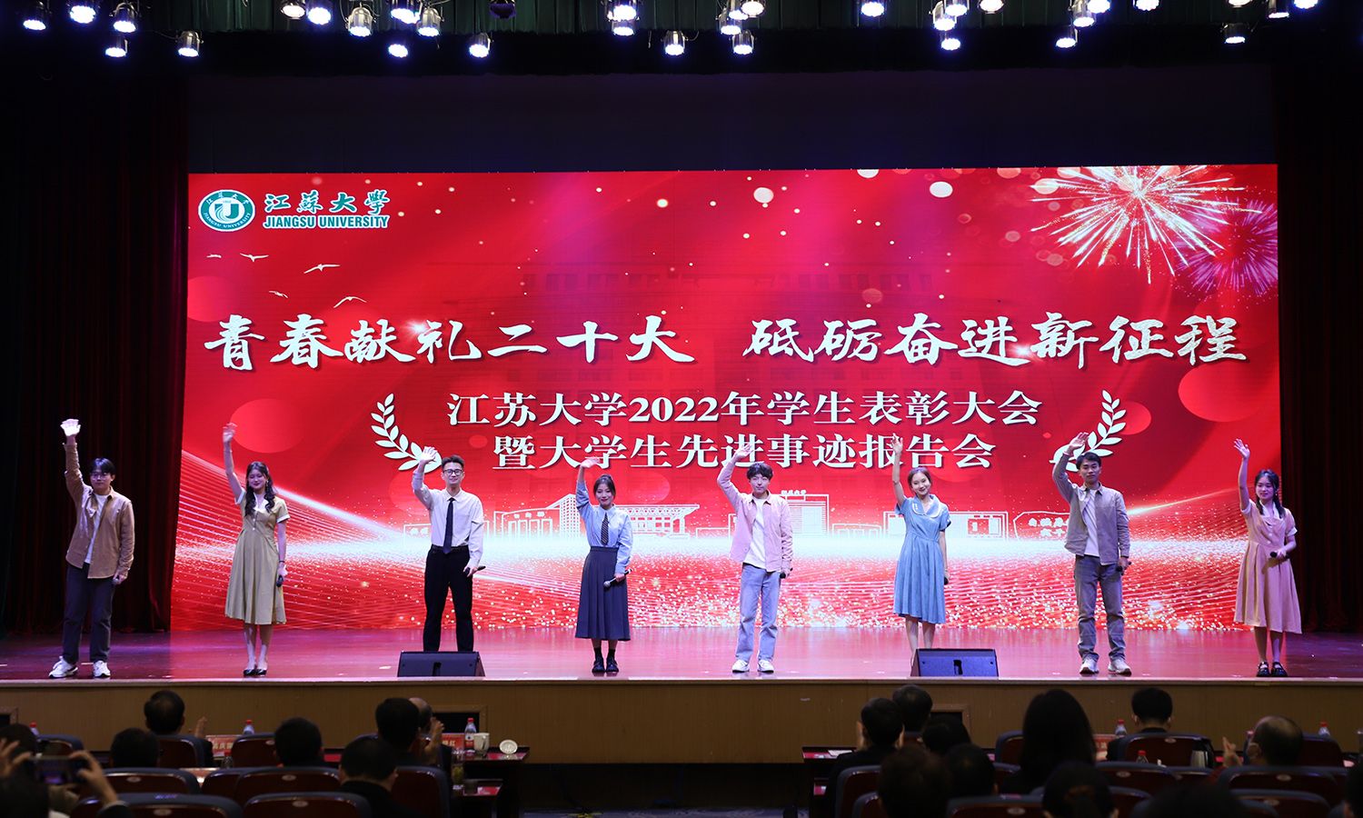 专职辅导员、学业导师以及学生代表共同朗诵《请党放心 强国复兴有我》,大会在师生合唱《青春就这Young》的歌声中落幕。