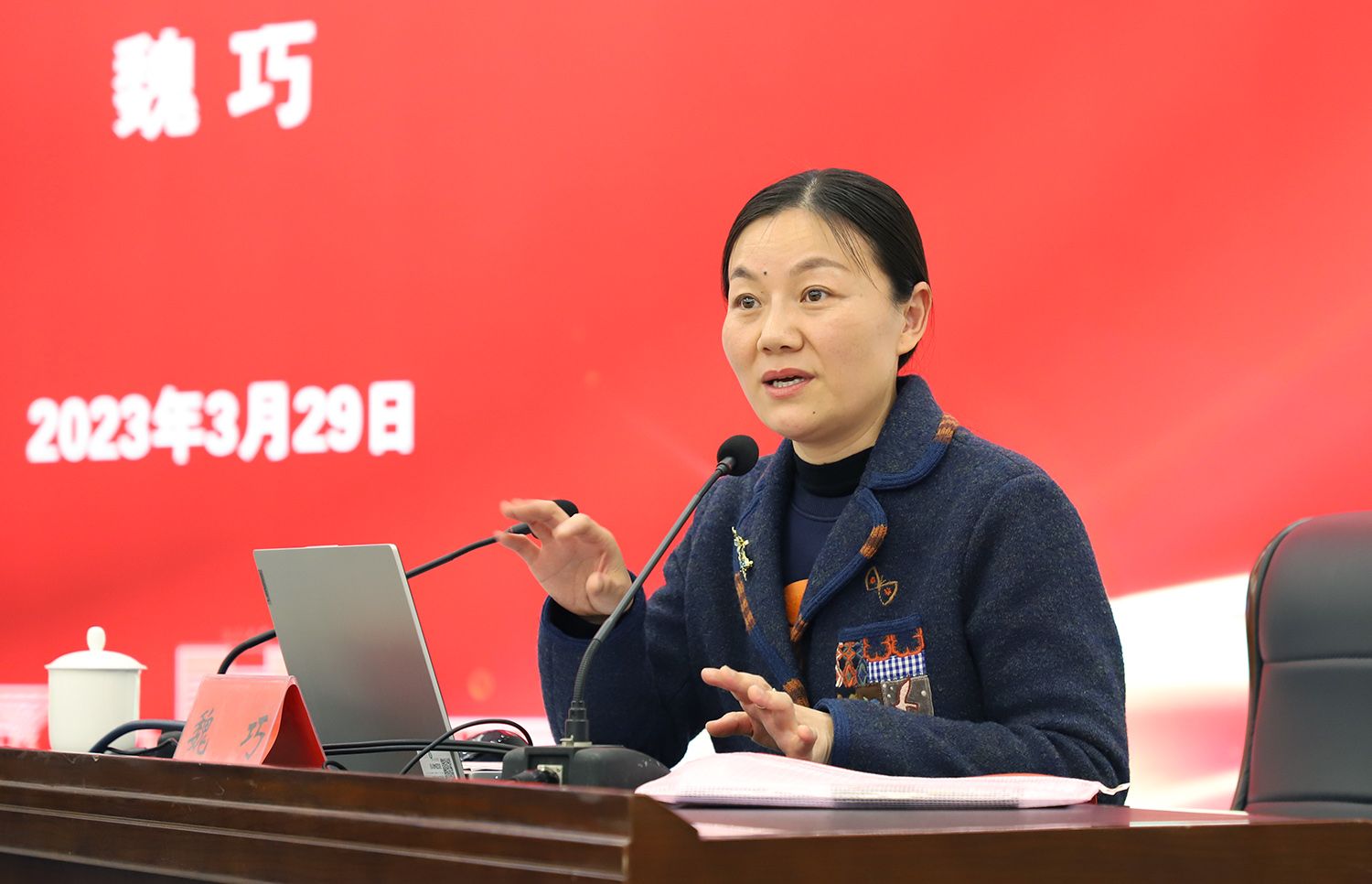 3月29日,爱游戏官方网全国两会精神专题报告会在青教公寓多功能厅举行。全国人大代表、镇江市镇江新区永兴农机机械化专业合作社理事长、江苏润果农业发展有限公司董事长、爱游戏官方网产业教授魏巧走进校园,为师生作全国两会精神专题报告。报告会由校党委常委、宣传部部长杨道建主持。