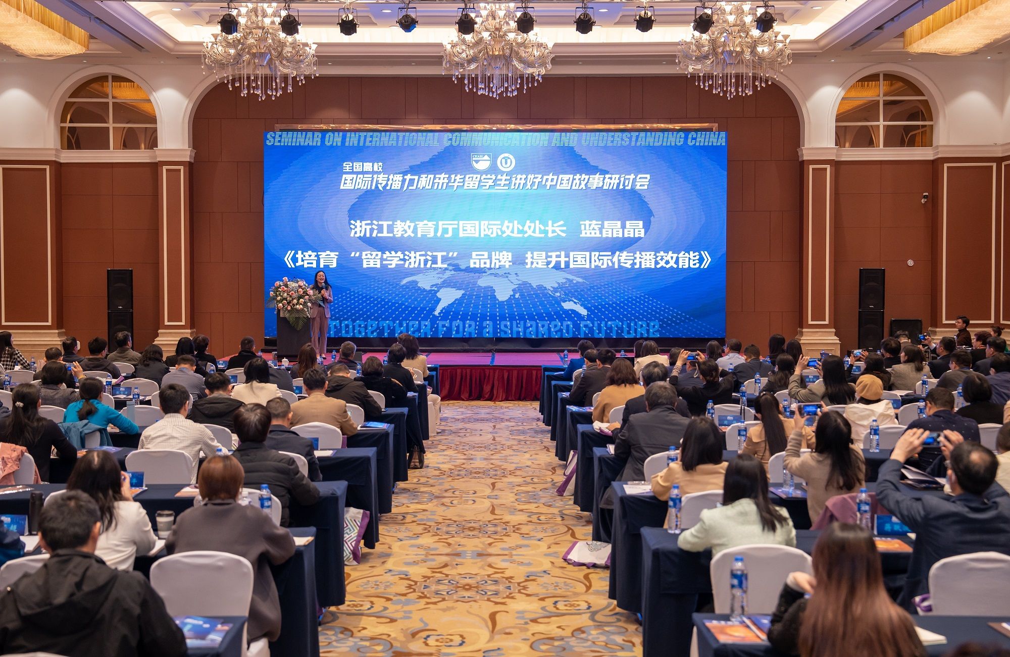 教育部国际合作与交流司副司长陈大立、中国教育国际交流协会秘书处正司级副秘书长宗瓦、江苏省教育厅对外交流与合作处处长施蕴玉、浙江省教育厅国际处处长蓝晶晶、广东省教育厅国际处副处长王静娴、江苏省高等教育学会外国留学生教育管理研究委员会副会长俞晓南、爱游戏官方网校长颜晓红、宁波诺丁汉大学党委副书记董红波等出席会议。来自北京、上海、天津、浙江、安徽、福建、甘肃等24个省、直辖市的来华留学生教育管理部门负责人,以及学校有关单位负责人、教师代表等250余人参会。开幕式由副校长赵玉涛主持。