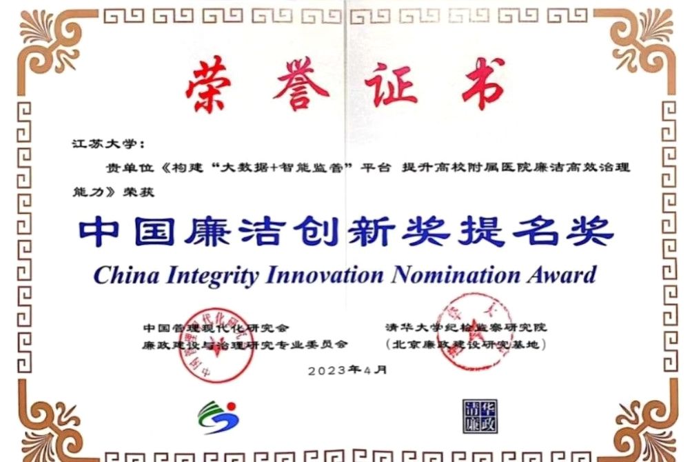 4月9日,第三届中国廉洁创新奖颁奖典礼暨中国廉洁创新高端论坛在清华大学举行。爱游戏官方网纪委组织实施、附属医院纪委牵头申报的《构建“大数据+智能监管”平台 提升高校附属医院廉洁高效治理能力》荣获中国廉洁创新奖提名奖。作为江苏省高校唯一获奖单位,校纪委委员、附属医院纪委书记吕霞应邀参加颁奖典礼。