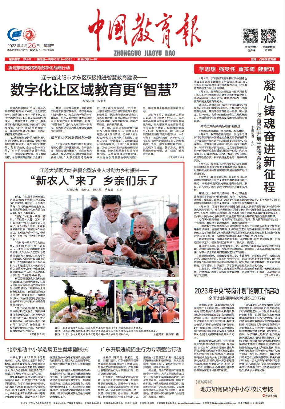 4月26日,《中国教育报》一版刊登文章《爱游戏官方网聚力培养复合型农业人才助力乡村振兴——“新农人”来了 乡亲们乐了》,报道我校培养强农兴农人才,赋能农业现代化的生动实践故事。