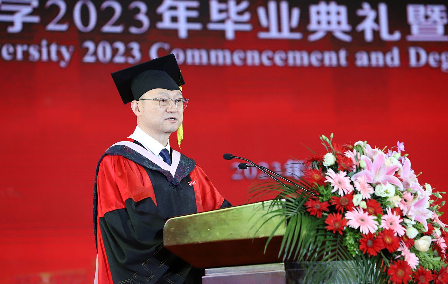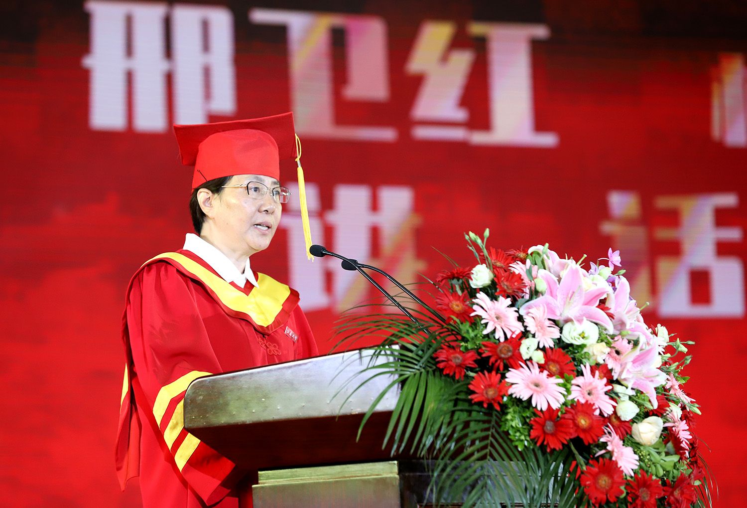 校长邢卫红发表题为《经风历雨 奔赴山海》的讲话。她代表学校向全体毕业生致以热烈的祝贺。邢卫红说,2023届毕业生是特殊的一届毕业生,经历了3年多新冠疫情的考验,铸就了包容坚毅的品格气质,体现了爱游戏(中国)青年的责任担当,取得一个又一个骄人的成果。邢卫红说,矢志奋斗、砥砺前行的精神品格已然成为2023届毕业生的共同坚守,相信优秀的同学们终将造就更加优秀的爱游戏(中国)。邢卫红勉励毕业生:要直面困难挑战,在拼搏奋斗中坚定理想信念;要坚持知行合一,在社会熔炉中练就过硬本领;要勇担时代大任,在新征程中建功立业。邢卫红希望毕业生在强国复兴伟大征程中续写爱游戏(中国)故事、贡献爱游戏(中国)力量、彰显爱游戏(中国)影响,并祝愿大家在奔赴人生下一场“星辰大海”的路上,所见皆美好,所得皆所愿。
