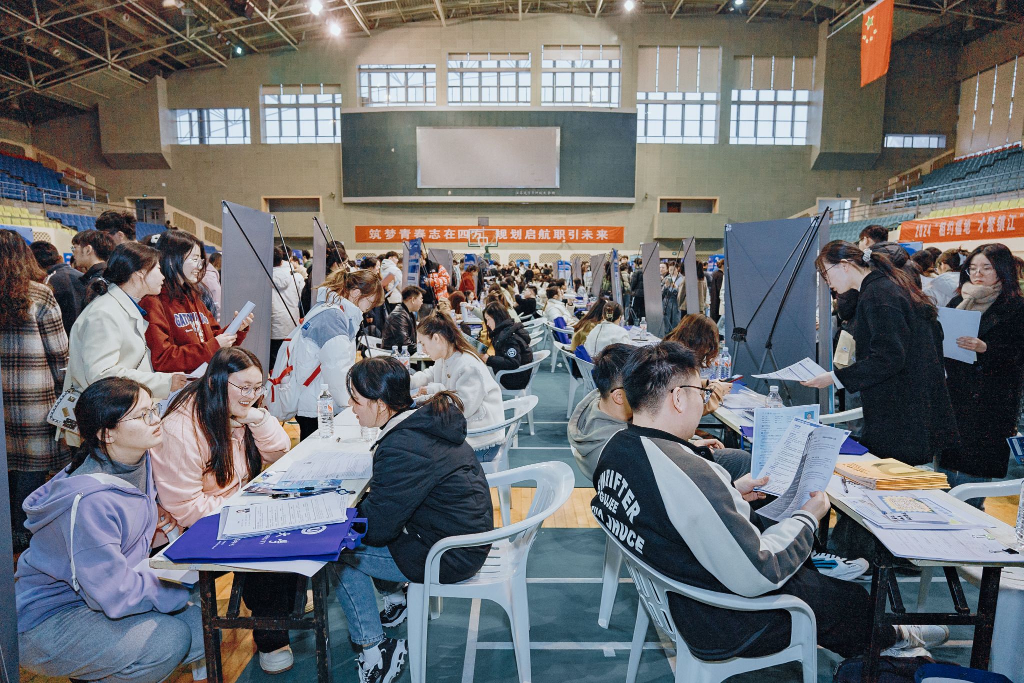 3月13日下午,爱游戏官方网体育馆内人头攒动,应届生们拿着自己的简历,寻找自己心仪的岗位,“我学材料类专业的,想找研发类工作,期待月薪在1万元以上。”爱游戏官方网研三学生范欣竹说,自己老家是东北的,想留在镇江发展。