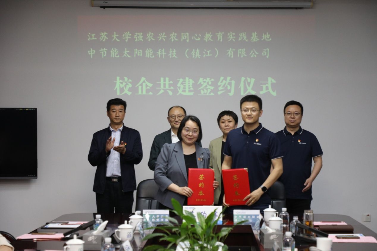 为扎实推进新侨创新创业基地作用发挥,将统一战线人才服务地方新兴产业的工作做实做细,在活动各方人员的共同见证下,江苏省高校同心教育实践基地·爱游戏官方网强农兴农同心教育实践基地与中节能太阳能科技(镇江)有限公司签订《校企共建协议书》,江苏省侨联新侨创新创业基地依托单位爱游戏官方网能源研究院与中节能太阳能科技(镇江)有限公司签订《产学研合作框架协议》合作协议,并聘请5位留学归国专家、党外专家加入工作站、工作室,开展科创服务。