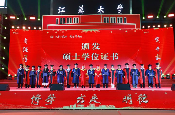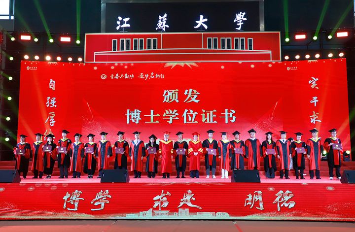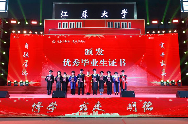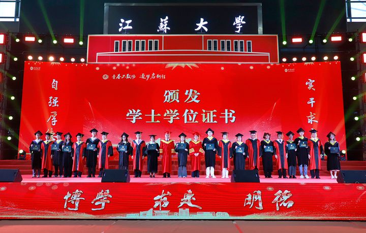 上午10时,2025届博士生、硕士生、本科生代表依次登上主席台。学校领导及党委常委为他们一一颁发学位证书、扶正流苏。爱游戏官方网党委书记李洪波为优秀毕业生代表颁发荣誉证书。